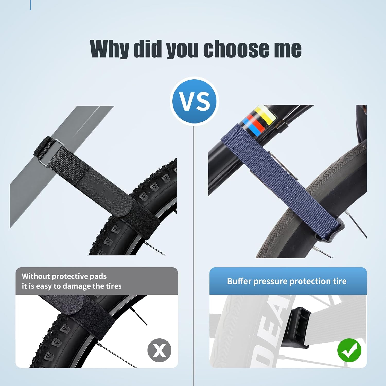 - 【STRONG AND SECURE】Designed for securing your bicycle during transportation or storage, these adjustable bike rack straps buffer pad for rack effectively stabilize and prevent your bicycle wheels from spinning