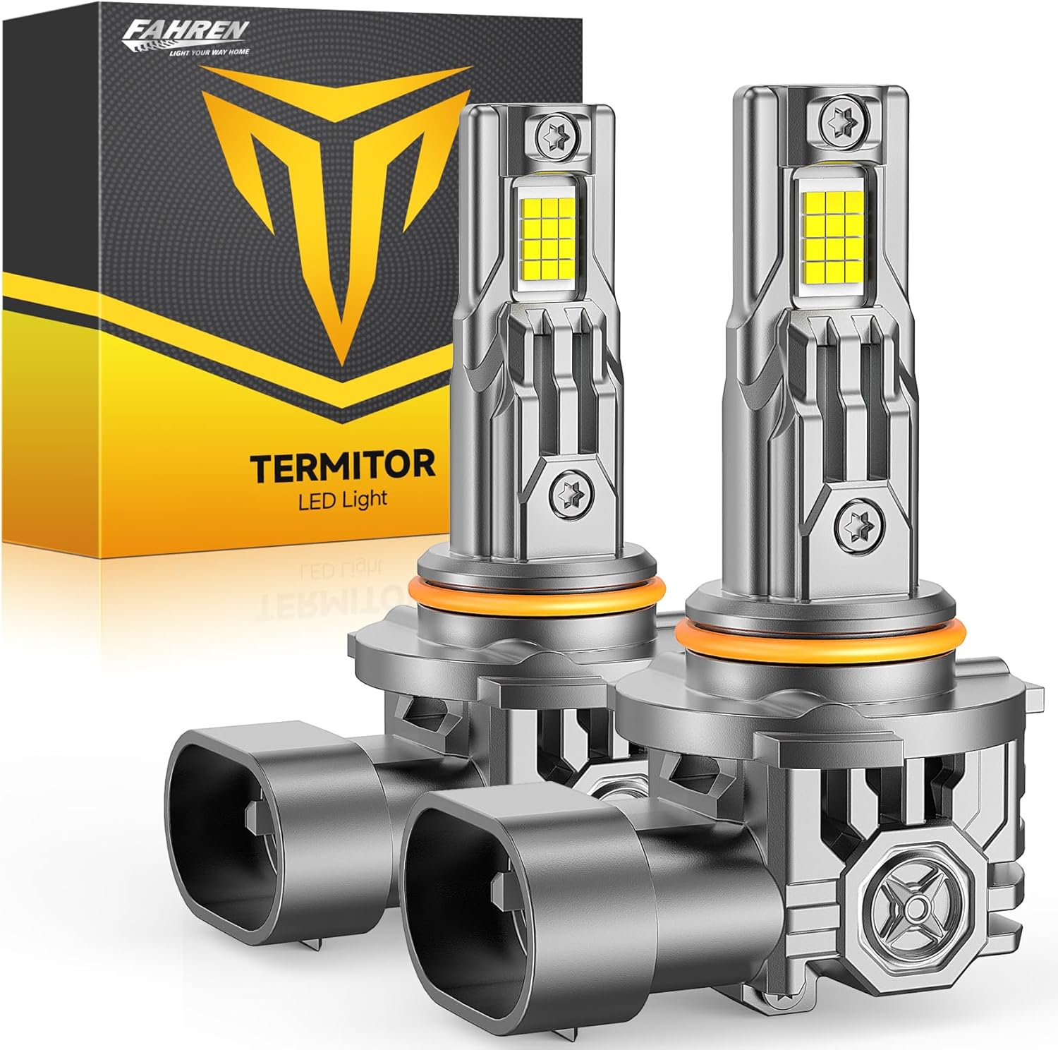 - 【Over 7,0000 Hours Lifespan】The FAHREN Termitor 9006/HB4 light bulb adopts a hard aviation aluminum housing and a hollow heat dissipation design, It complemented by thermostatic copper plate and a built-in 12,000 RPM cooling fan to swift heat dissipation, maintain stable and uninterrupte operation, these can that each lamp has a working life of up to 10 years. Say goodbye to the hassle of frequent replacements.