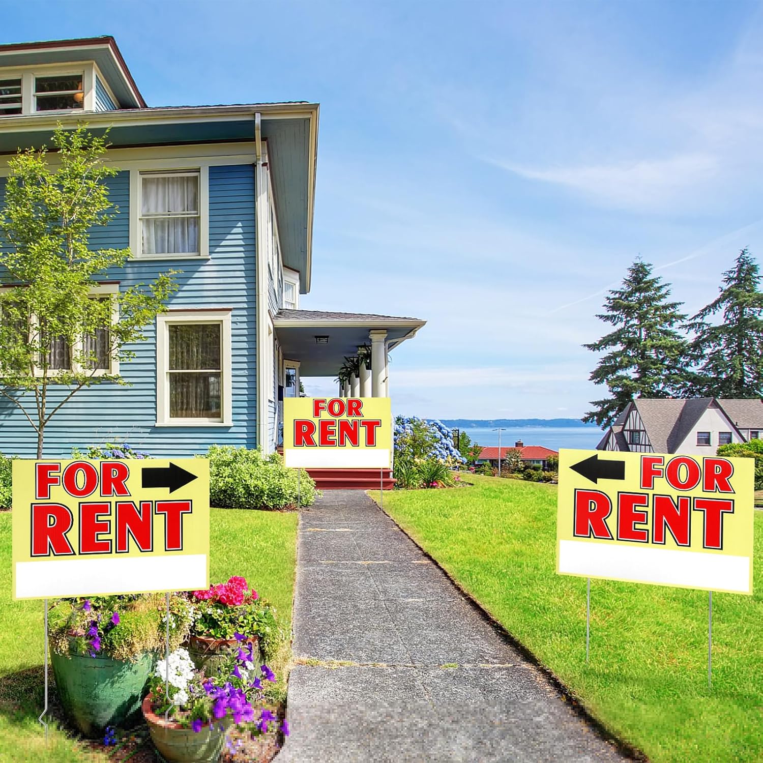 - For Rent Kit: the package includes 3 pieces of for rent sale signs with stakes, offering an ideal solution for those needing multiple signs; Ideal for an extensive yard sale or advertising on multiple locations, they ensure that your sale gets the attention it deserves