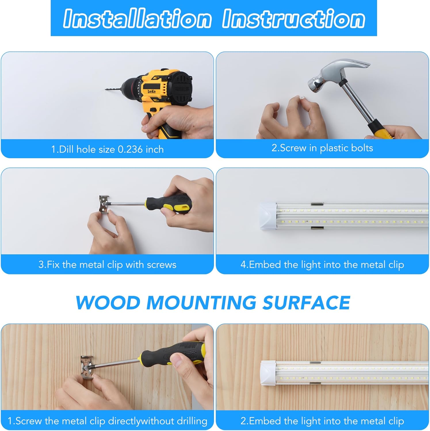 - [Ultra-Bright 270° V-Shape LED Shop Lights]Get commercial-grade brightness! Our 8FT LED lights feature 160LM/W & a 270° V-shape design for uniform, flicker-free daylight (6000-6500K). Perfect garage led lights or workshop led light fixture, illuminating every corner. Outshines fluorescents, slashes energy costs.
