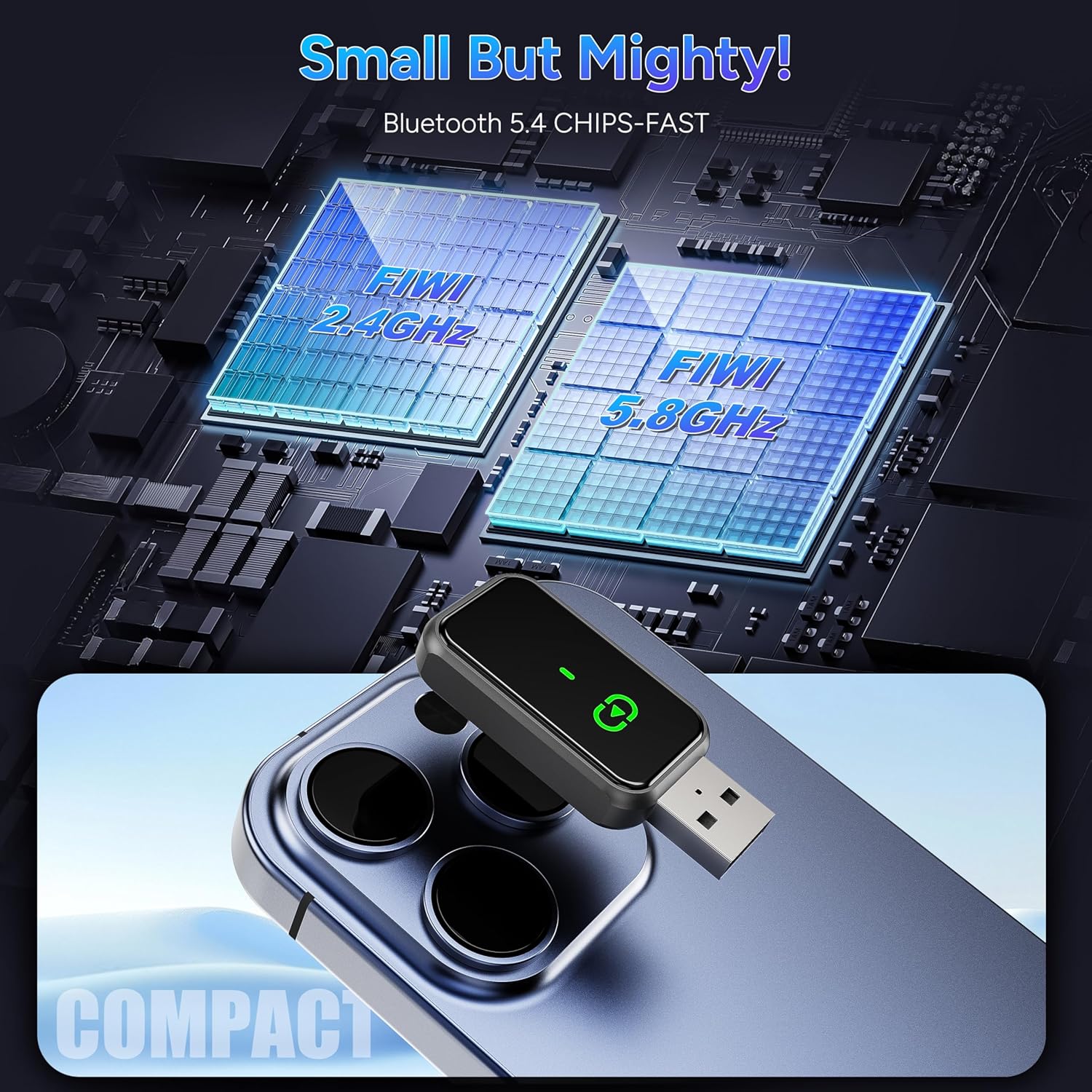 - Advanced Technology for Flawless, Lag-Free Use - Built with cutting-edge WiFi 6 and dual-channel switching, this carplay adapter guarantees stable, high-speed data transfer without any delay - perfect for navigation, and real-time calls. Enjoy high-definition audio and visuals that sync perfectly with your driving environment. The carplay wireless adapter designed for long-term use, it features low power consumption and built-in safety protections, ensuring your vehicle’s electrical system stays safe and efficient. Future-proof with ongoing firmware upgrades—your smart car companion for years to come.