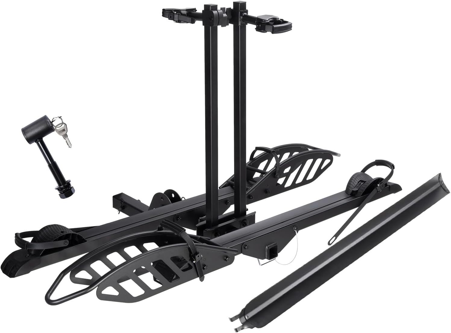 - Heavy-Duty ebike rack – 200lbs Capacity: This ebike rack supports 2 bikes up to 100lbs each, perfect for fat tire bikes and electric bikes. Compatible with any 2-inch hitch receiver, it fits most vehicles including SUVs, trucks, and RVs. Tire widths up to 5” and wheelbases up to 50” are supported, making it an ideal bike rack for car and bike rack for SUV