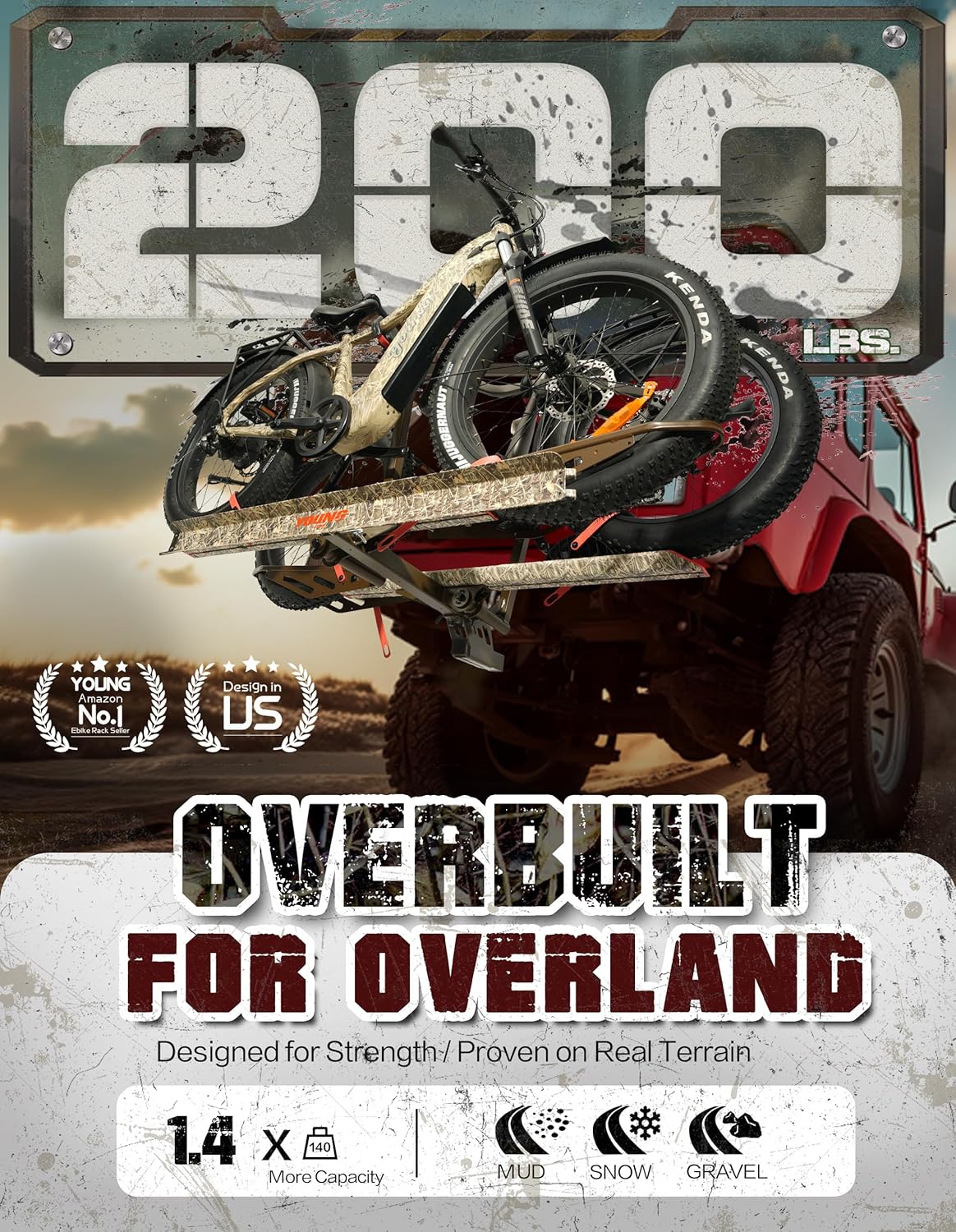Young Bike Rack Hitch Mount for 2 E-Bikes, Fat Tire, Electric Bike Rack, Car, SUV, Truck, RV, Platform Carrier, 200lbs Capacity, Foldable, Anti-Wobble, Bike Holder, Cargo Rack, 2" Receiver, Camo