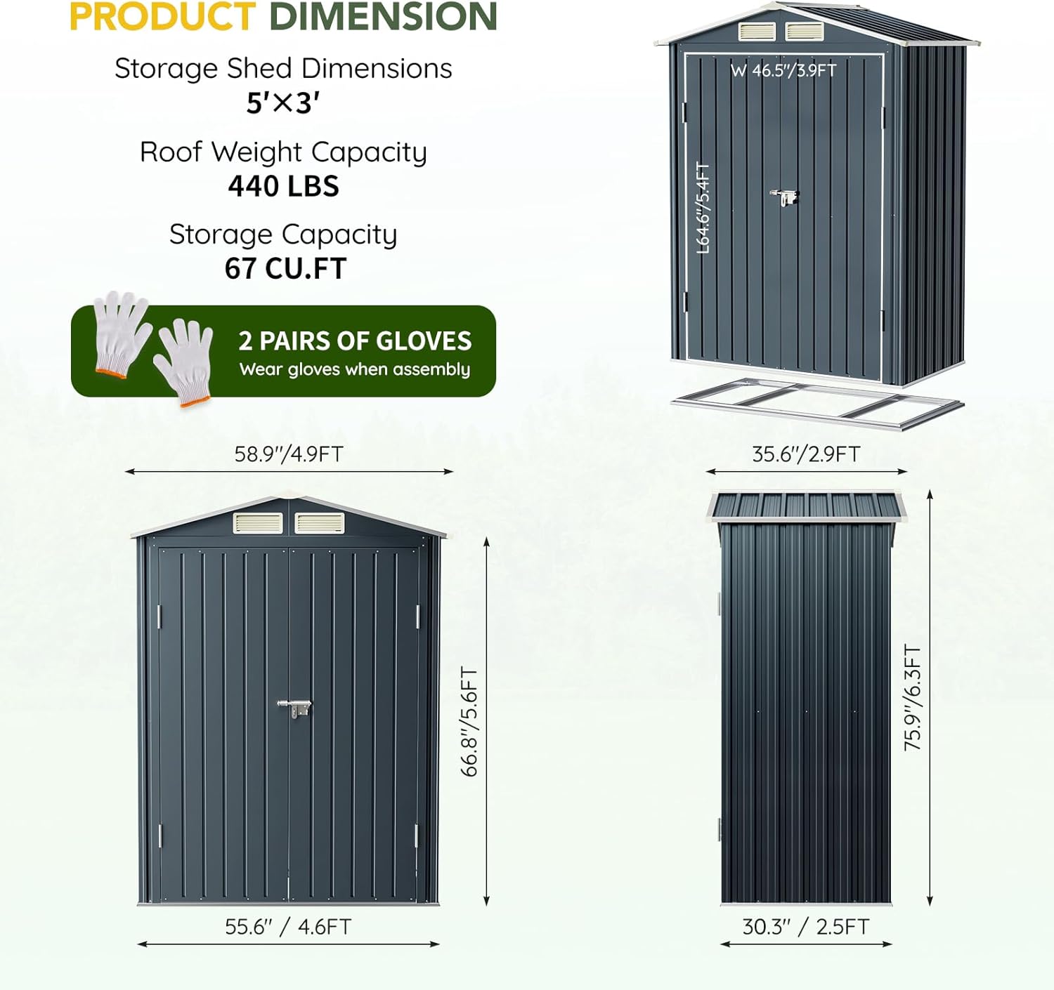 - Steel Construction & Compact Size: This shed is ideal for storing garden tools, bicycles, pool supplies, and seasonal equipment in limited outdoor spaces.