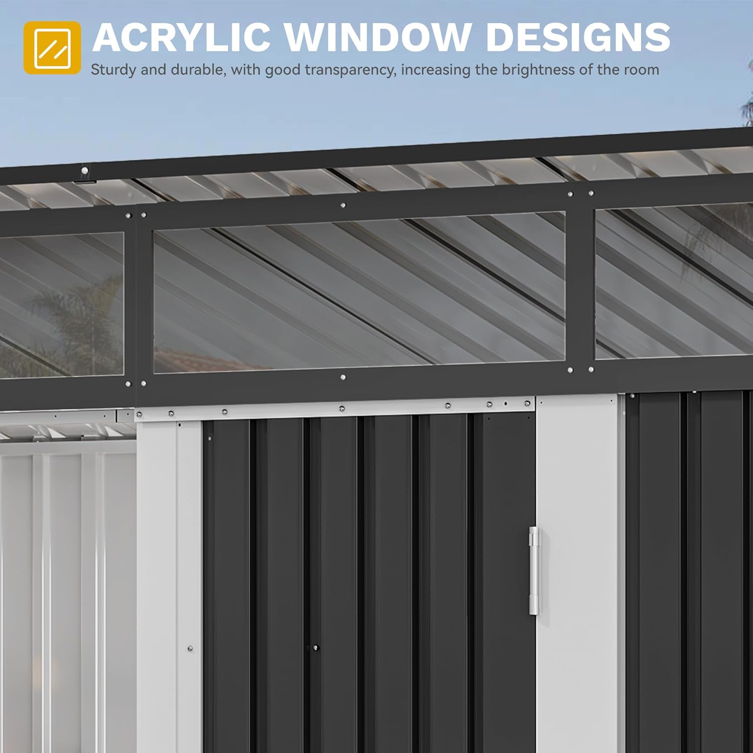DWVO 9x4 FT Outdoor Storage Shed with Acrylic Windows, Utility Tool Shed Metal Storage Garden Shed with Door & Lock for Bike Storage, Waterproof Trash Shed for Backyard Garden Patio, Dark Dray