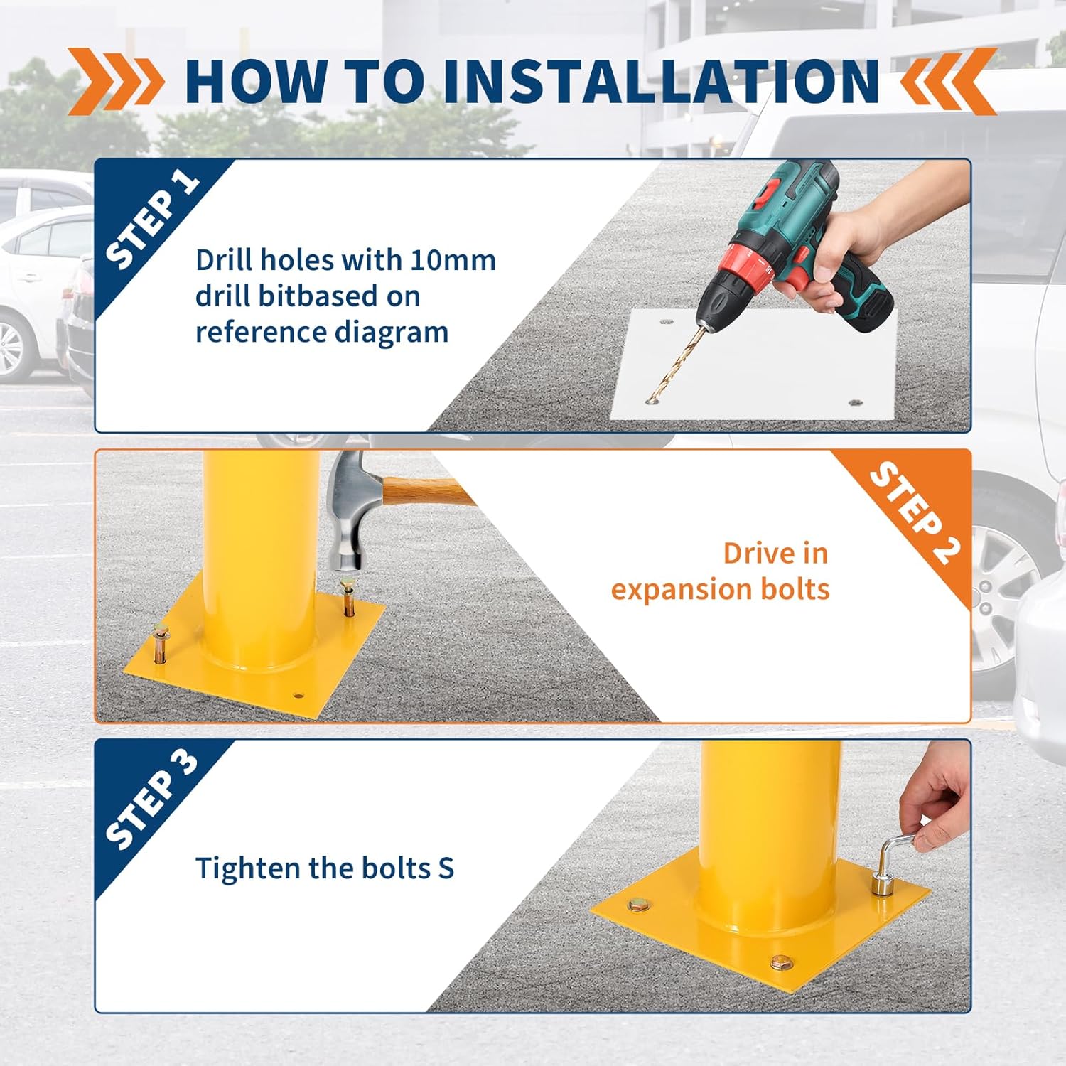 - Versatile Protective Barrier: Ideal for defining boundaries and protecting areas in parking lots, sidewalks, pedestrian walkways, plazas, school zones, and commercial properties.