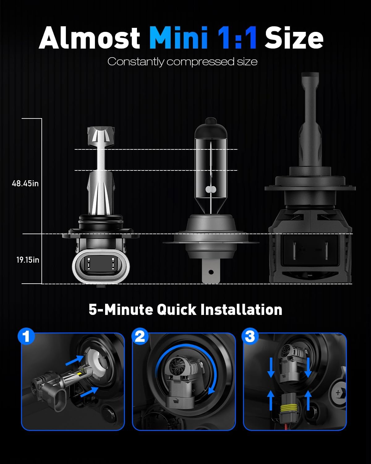 - ăCompact & Easy to InstallăOur LED fog bulbs are 25% smaller than others, matching halogen mini 1:1 size. Enjoy a quick - install design that takes only 5 minutes, fitting various car models easily