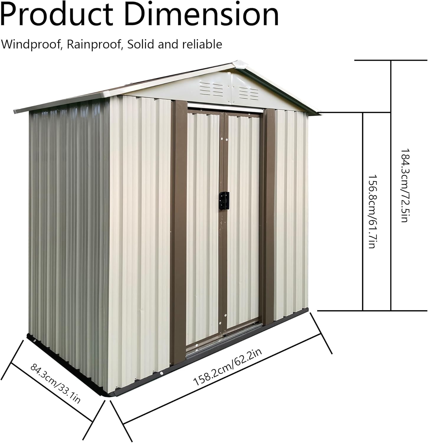 - Punched Vents - Designed with ventilation to keep your stored items dry and reduce odors, its overlapping wall panels are waterproof, moisture-proof, and UV-resistant, capable of withstanding harsh weather conditions.