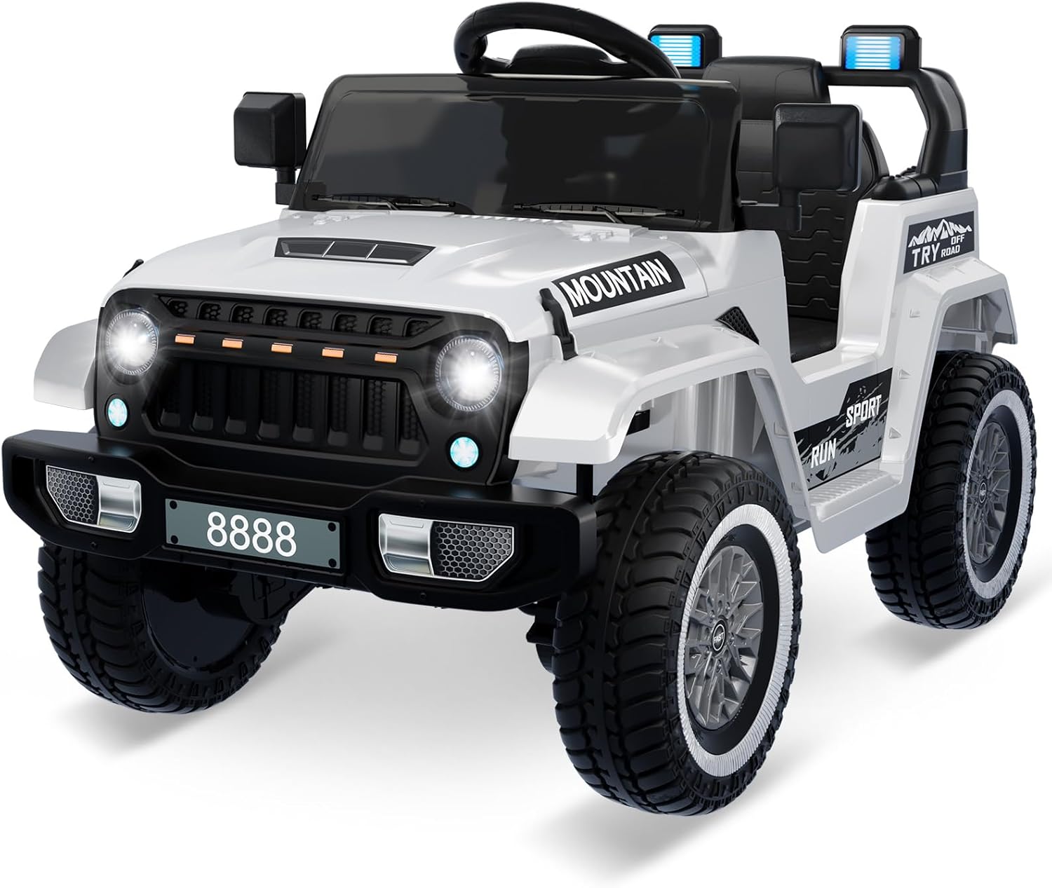 12V Kids Ride on Truck Car, w/Parent Remote Control, Twin 35w Motors, 3 Speeds, LED Lights, Music & Horn, Spring Suspension, Kids Electric Vehicles Toy for 3-5 Years Old Boys Girls Gift, White
