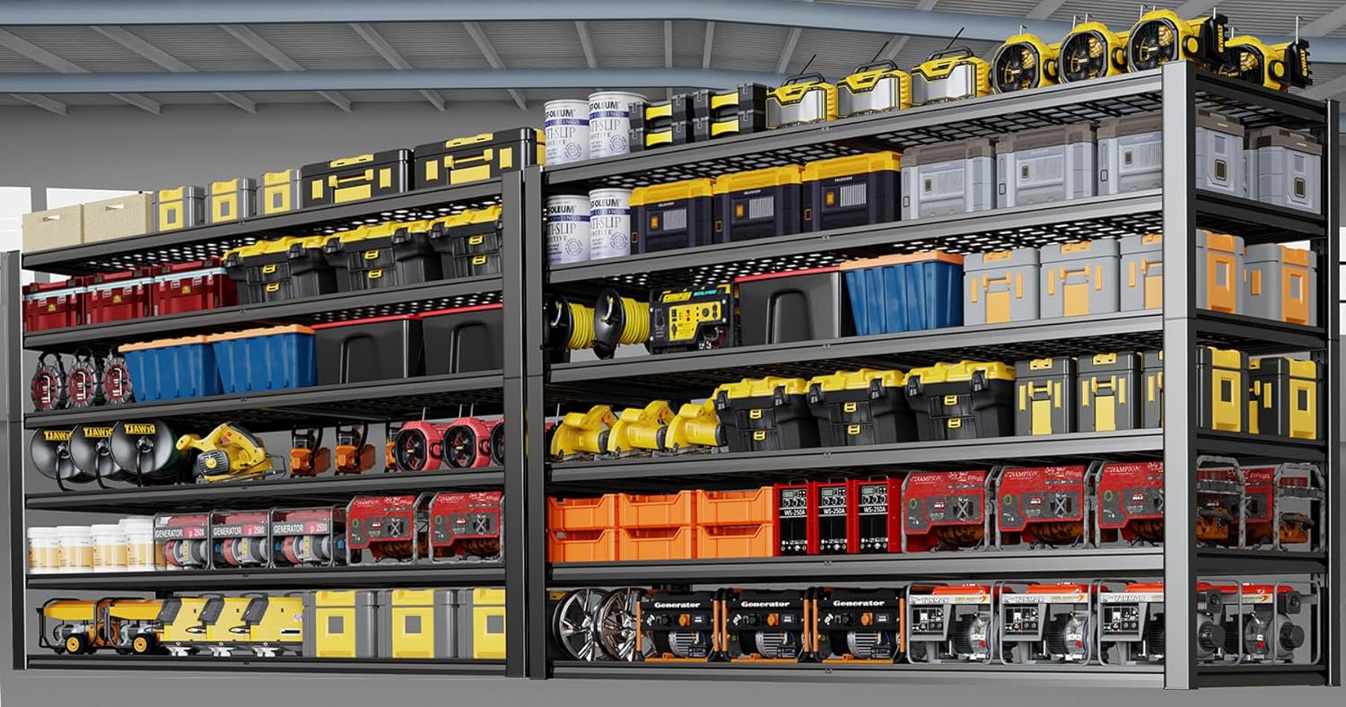 - ăAdjustable Heavy Duty Metal Shelves to Meet Different NeedsăThe height of each tier can be adjusted not only by moving the crossbar to meet the needs of different heights, but also the shelves can be assembled or disassembled into a variety of different metal shelves. The 84-inch tall 3900 lb. load-bearing garage shelves are not only strong, but they also give you more storage space.
