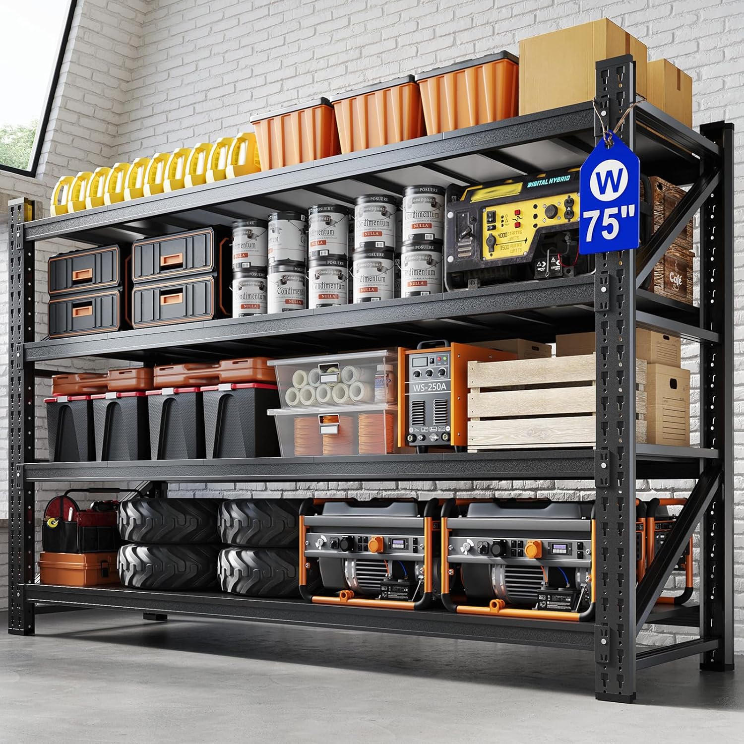 Yizosh 75" W Metal Garage Storage Shelves,8000LBS Heavy Duty 4-Shelf Adjustable Steel Organization Shelving,Utility Rack Shelf,75" W x 24" D x 70" H for Basement,Warehouse,Industrial