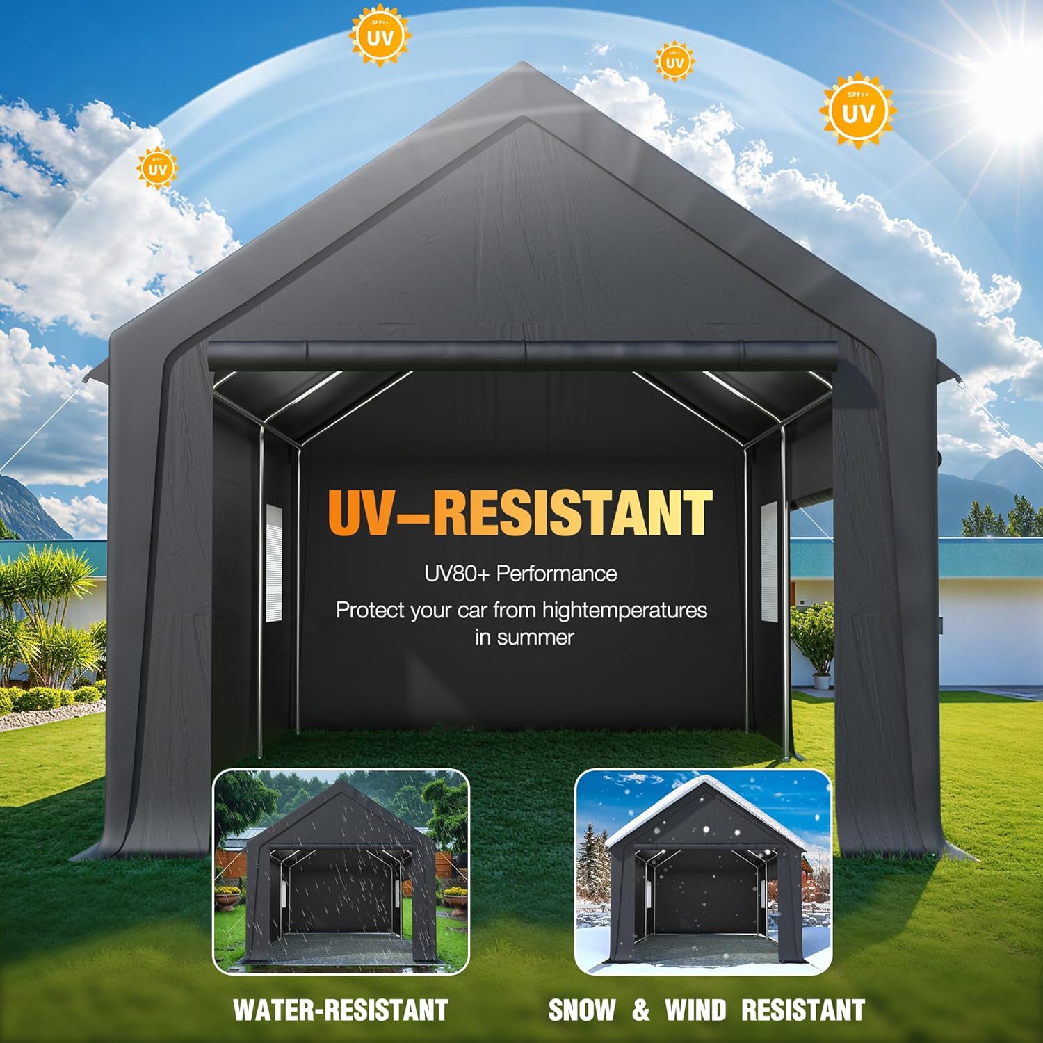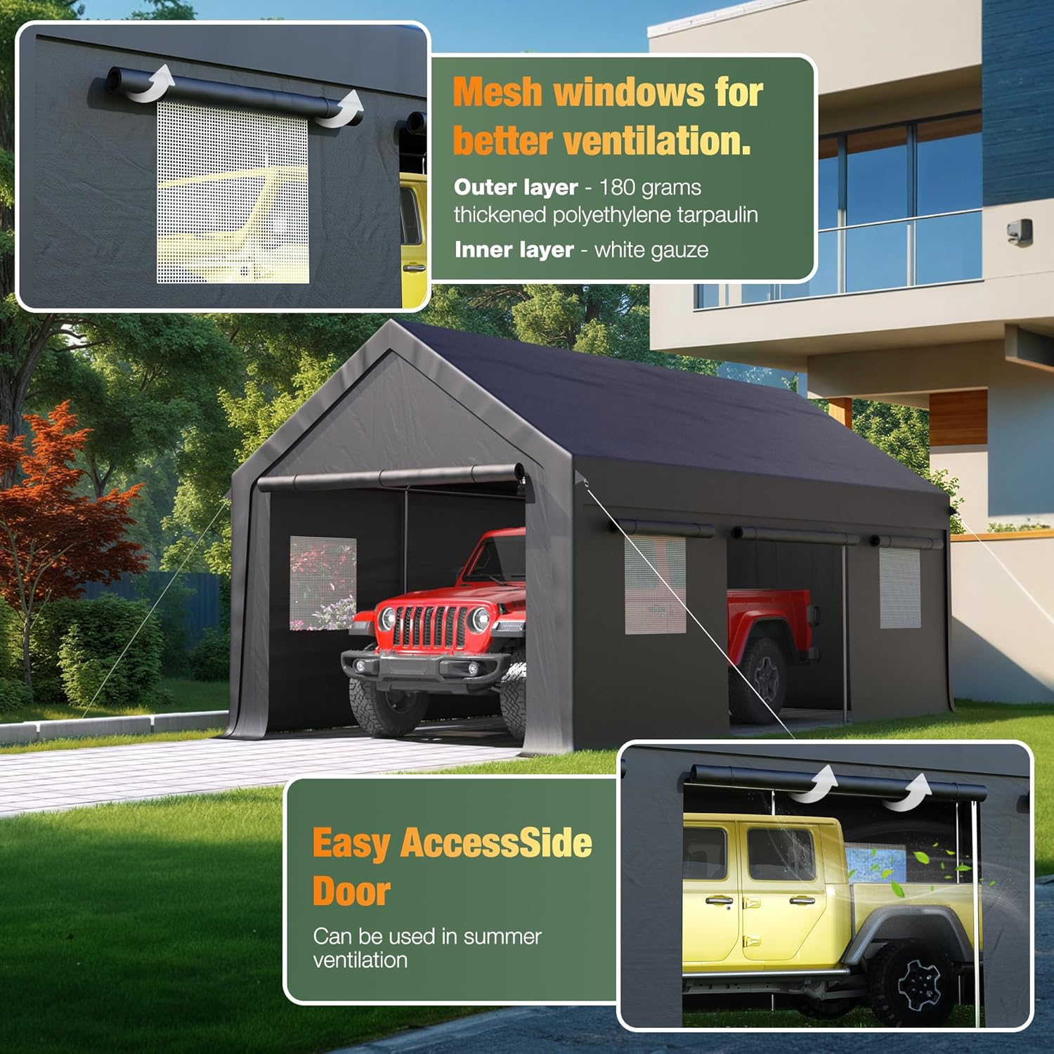 Polar Aurora Carport, 12x20 FT Heavy Duty Carport with Side-Opening Door & Roll-Up Windows, Car Port Canopy, Outdoor Portable Garage for Car, Truck, Boat, Motorcycle