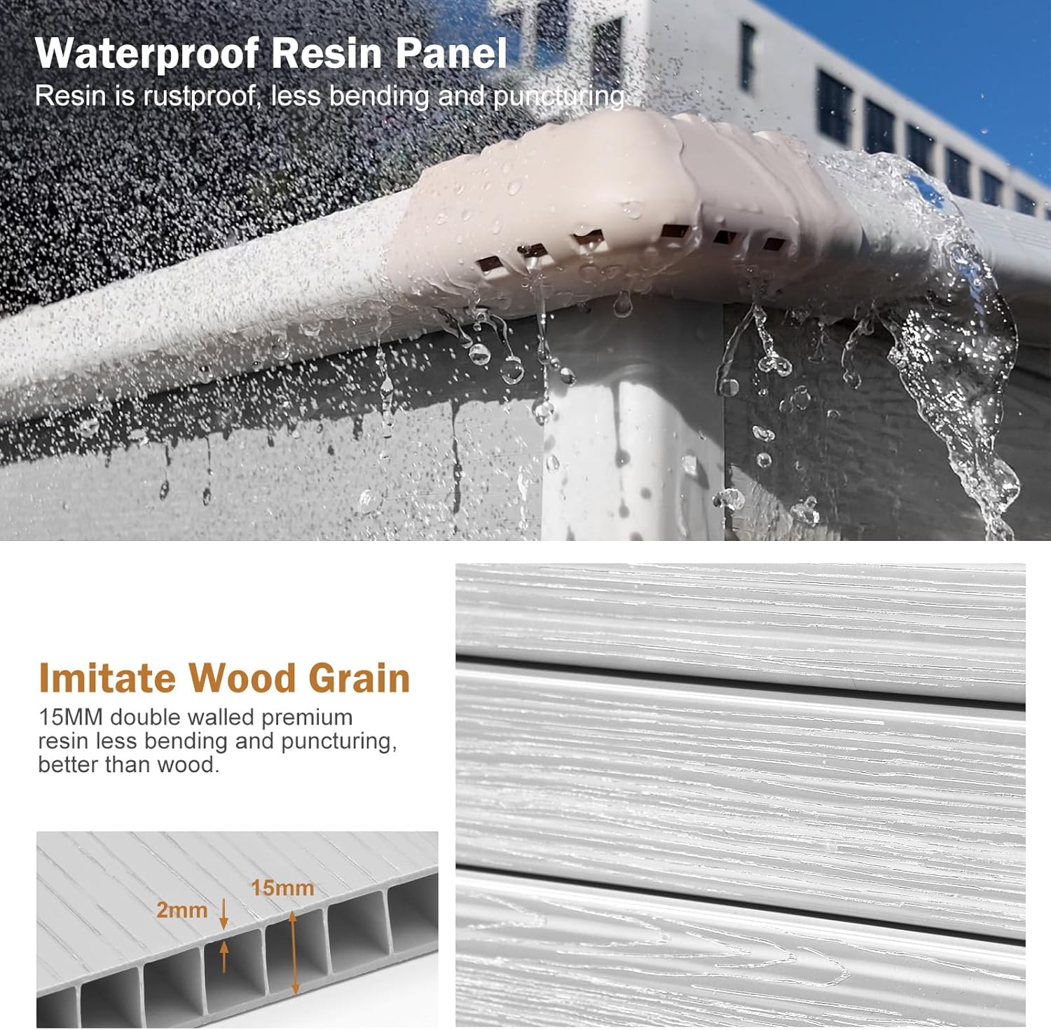 - 【PREMIUM RESIN MATERIALS SHEDS】 Our durable storage shed is crafted with 15MM premium polypropylene resin plastic, which is thicker than others in the market. Resin shed is waterproof, rustproof and UV-resistant, less bending and puncturing, worry-free for use in all weather conditions. It is a great shed house for your backyard, patio and garden