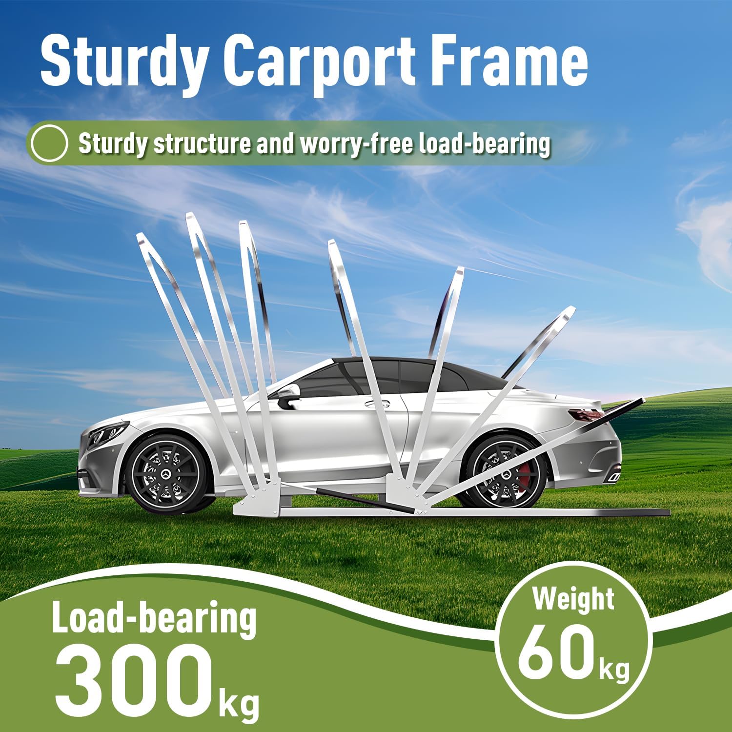 - Sturdy & Durable : The heavy-duty carport measures 18 feet long (about 5.5 meters) × 8.2 feet wide (about 2.5 meters) × 7.5 feet high (about 2.3 meters), which can easily accommodate small and medium-sized cars such as sedans. It can support up to 300 kg and remains stable on all surfaces and is suitable for cement, mud, marble and other floors
