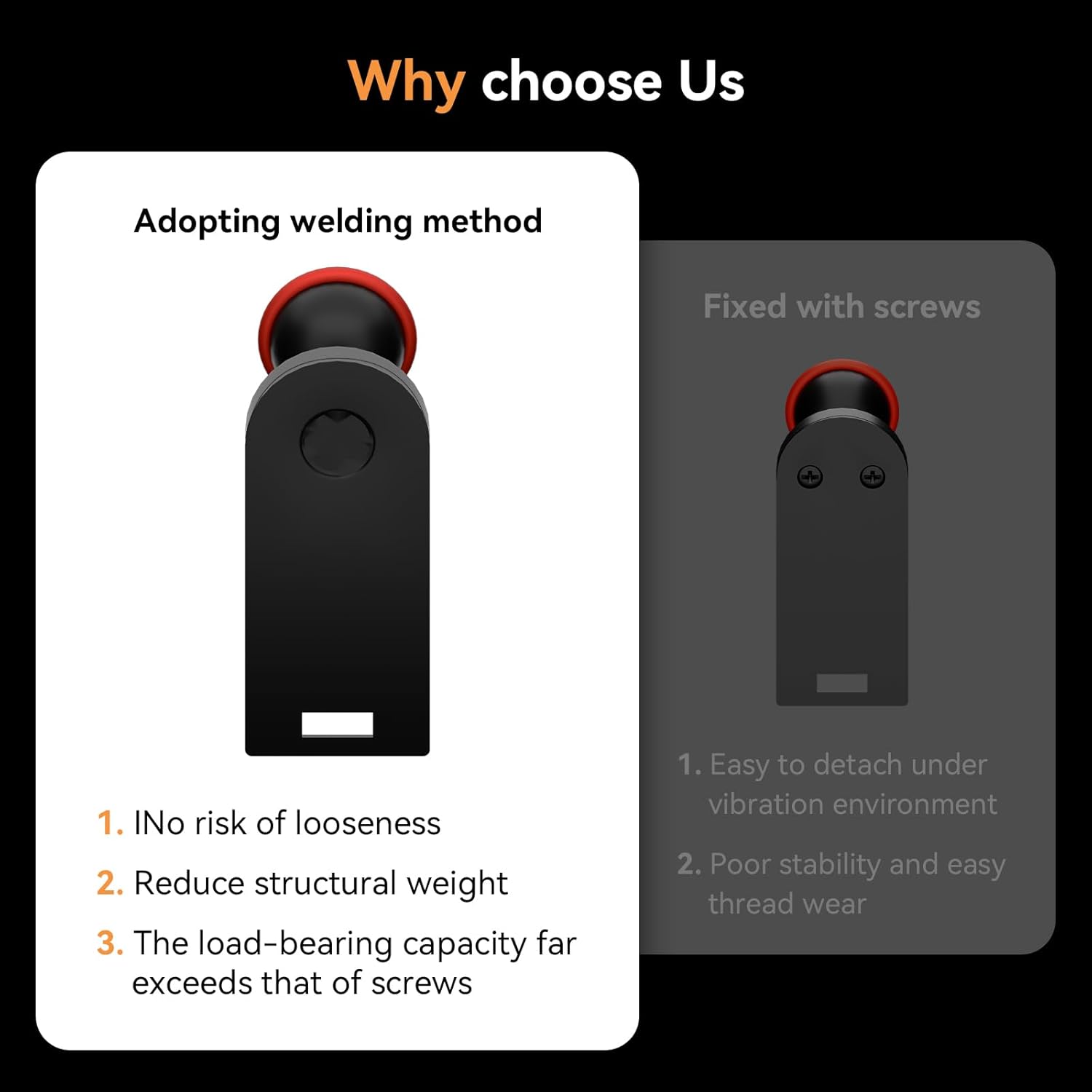 - Updated Radar Detector Mount-Our Radar Detector Mount uses laser welding to fix the spherical base and the connection adapter. It is more secure than the small screw fixing method. There is no need to worry about the connection adapter falling off during driving.