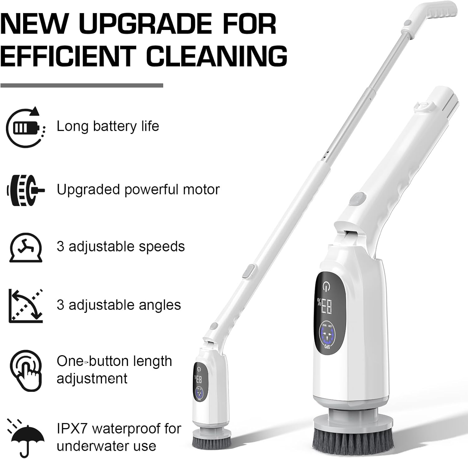 - UP TO 200 MINS OF POWERFUL CLEANING: Enjoy extended, uninterrupted scrubbing sessions thanks to the long-lasting 2600mAh battery. This scrub brush provides up to 200 minutes of cleaning on a single charge, perfect for tackling any task without constant recharging