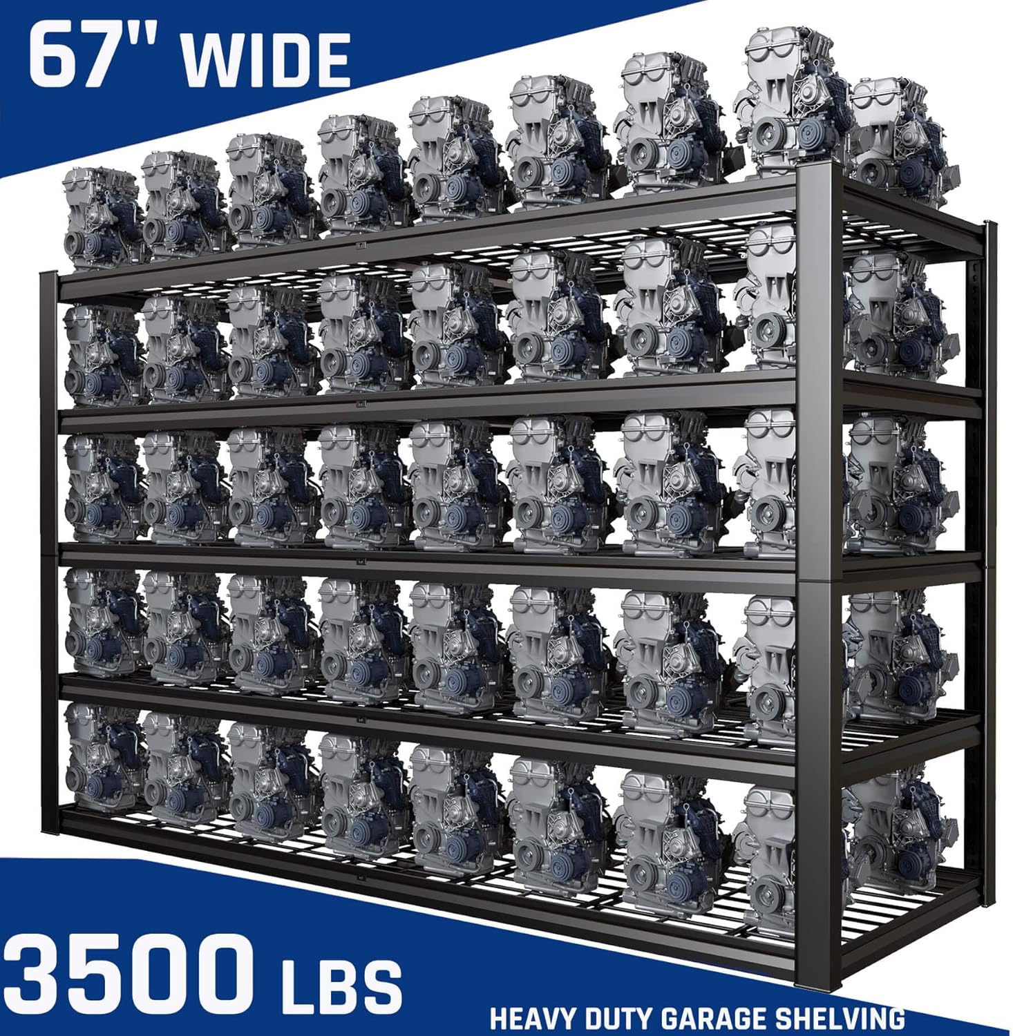 67" W Garage Shelving Heavy Duty, 67" W x 24" D x 84" H, Adjustable 5 Tier Metal Shelves, Commercial Metal Shelf Rack, Industrial Shelving, 2 Pack