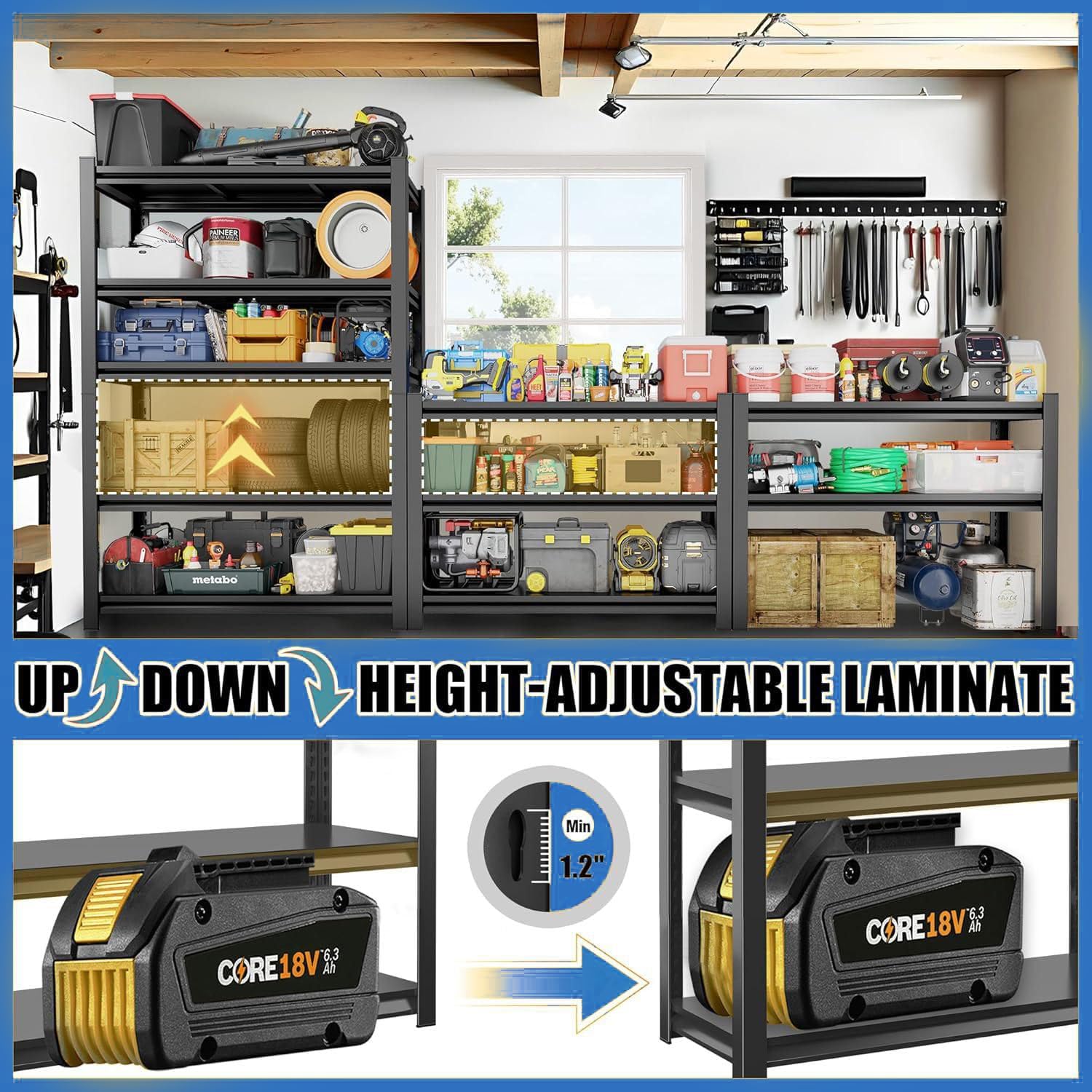 Garage Shelving 3500LBS Storage Shelves 5-Tier Adjustable Metal Shelving Units Garage Storage Shelves Heavy Duty for Industrial, Warehouse, Basement, Commercial, Black