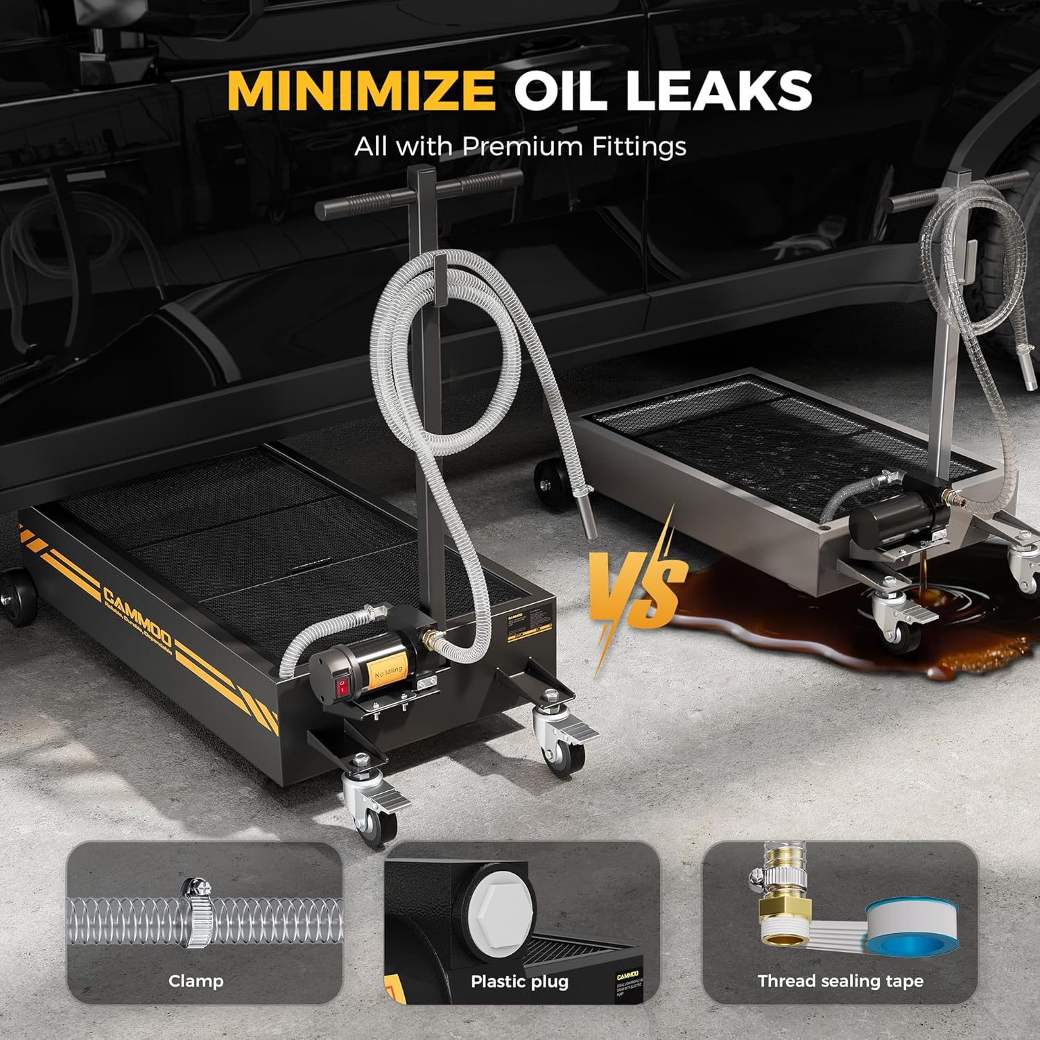 - Heavy-Duty Construction:The electric oil change pan has 1.5 mm carbon-steel walls and is 0.5 mm thicker than standard oil change pans, so it resists daily wear, handles heavy hydraulic loads without warping, and stands up to rough movement in busy shops. It features a precision powder-coat finish that fights corrosion, stays rust-free, and keeps the surface looking sharp. Finely welded seams boost load capacity and eliminate leak risks, and each unit is water-tested before shipment to ensure it is a long-lasting, leak-proof tool for shops, fleets, and DIYers.