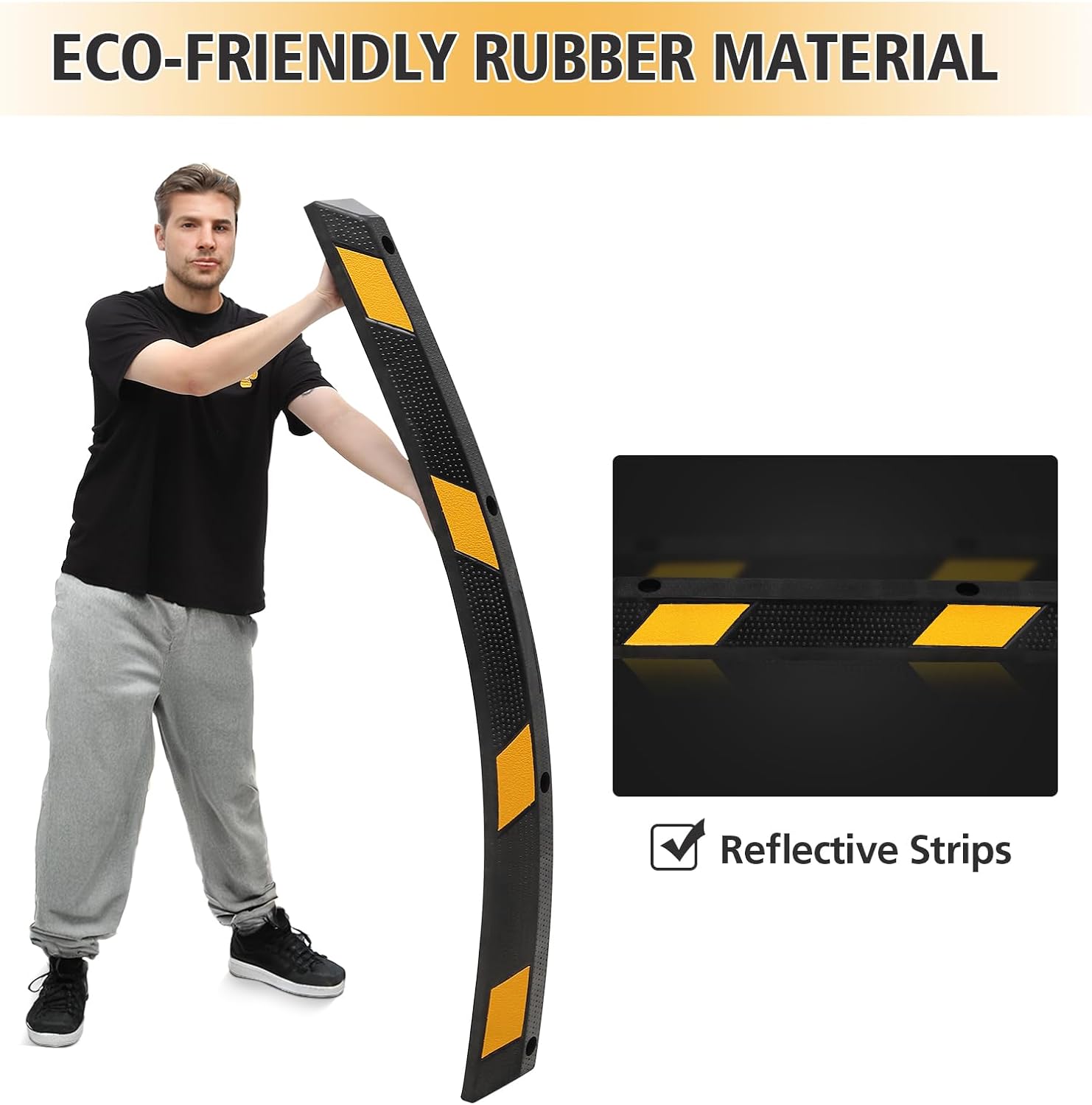 - 【Effortless Setup with Built-in Mounting】With integrated mounting holes, installing your car stopper is a breeze. The bright yellow reflective safety strips increase visibility at night, allowing you to park safely and with confidence.