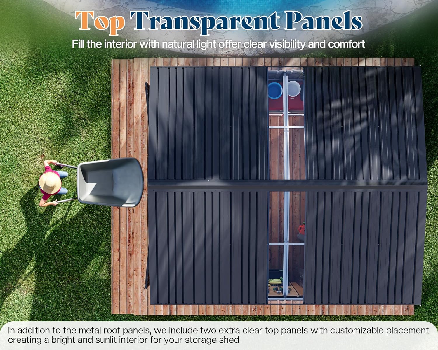 - Abundant Natural Light: The shed features two transparent panels and two 4-pane windows, allowing plenty of sunlight to brighten the interior. You can customize their placement to suit your preferences