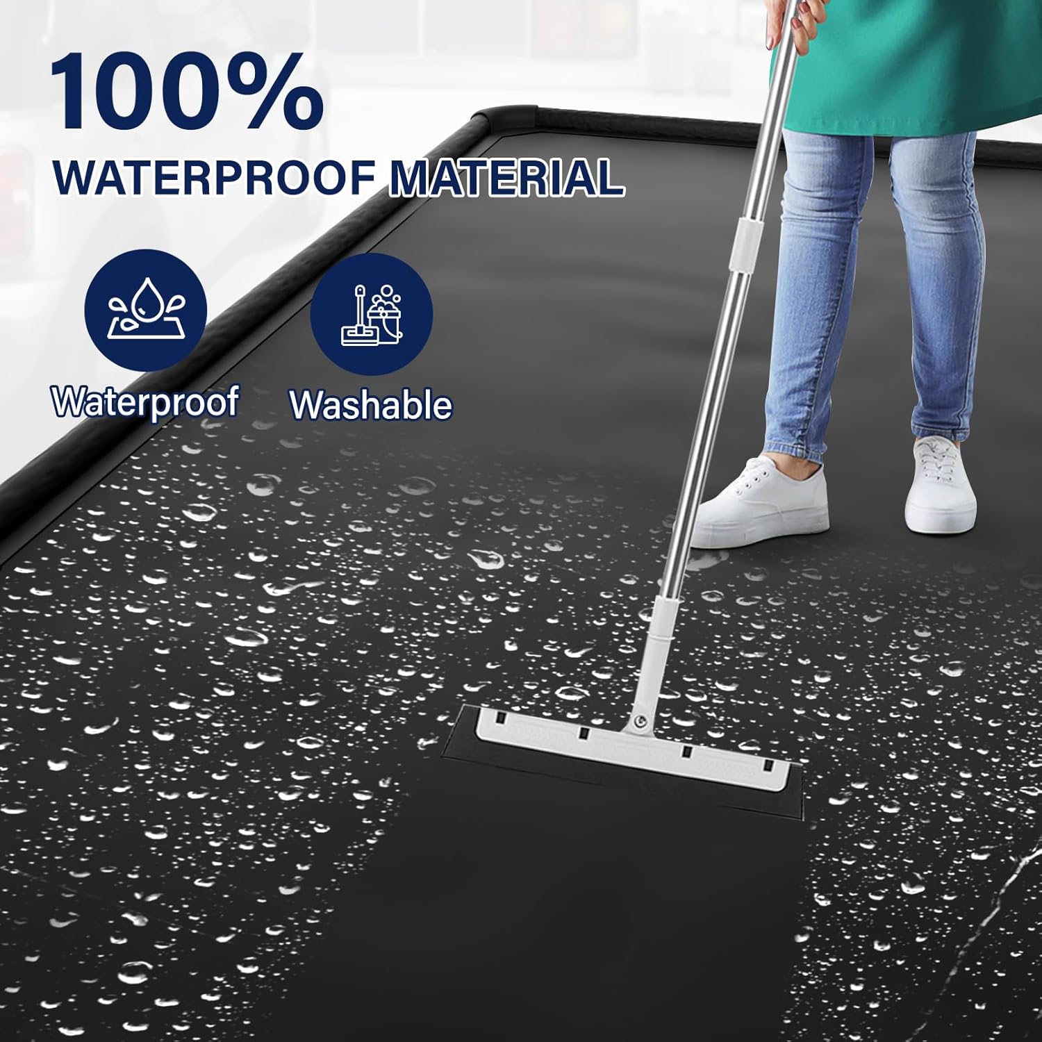 - Our unique raised edge design acts as a sturdy barrier, effectively trapping melted snow, water, mud, and other liquids inside the mat. This fully contained system prevents dirty liquids from running onto your garage floor, keeping it dry and spotless. Say goodbye to messy puddles and stains.