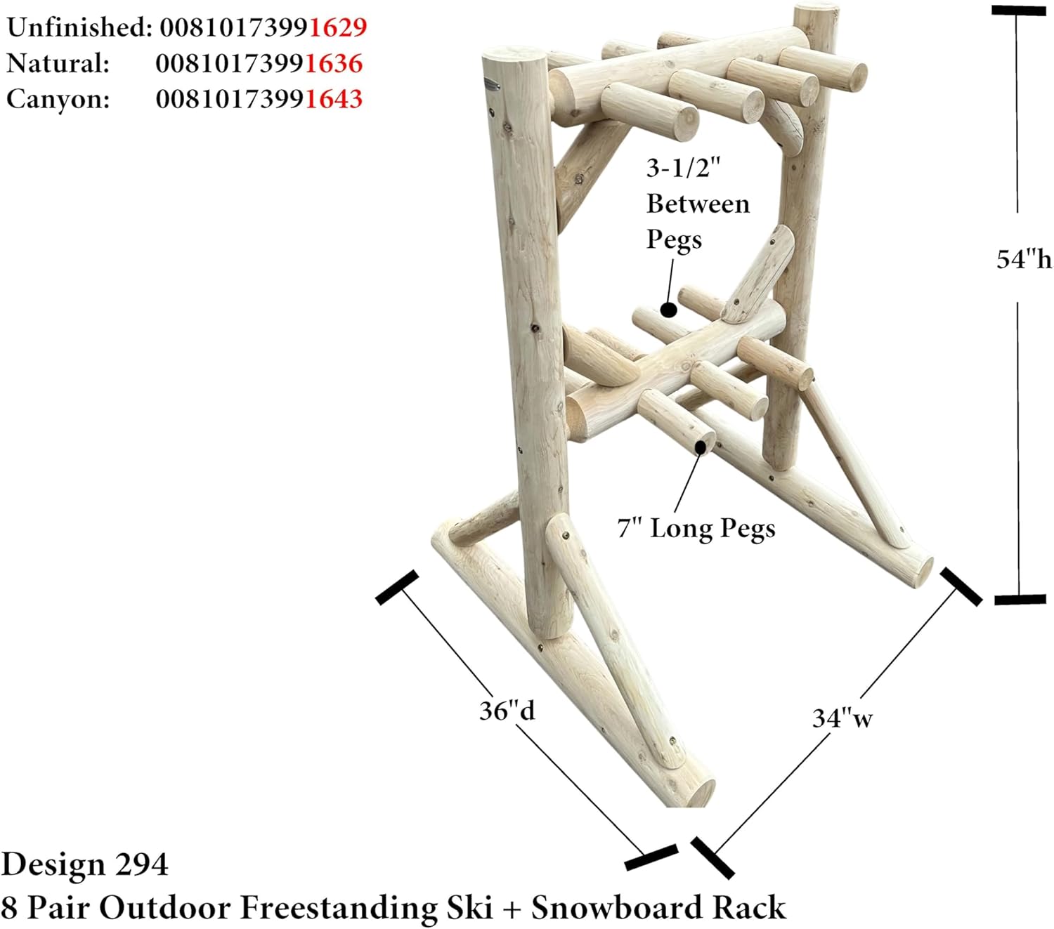 - 100% NORTHERN WHITE CEDAR CONSTRUCTION: Made from solid Northern White Cedar, this durable wood storage rack blends naturally with outdoor environments and holds up well in changing weather. It's suitable for both ski and snowboard storage, whether indoors or outdoors. The natural cedar look enhances any setting, while offering strong performance as a ski rack for garage, cabin, or home garage sports equipment organizer.