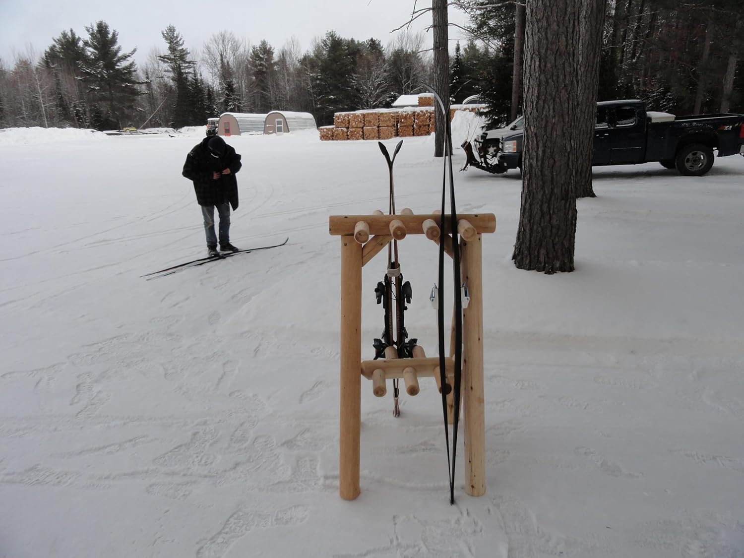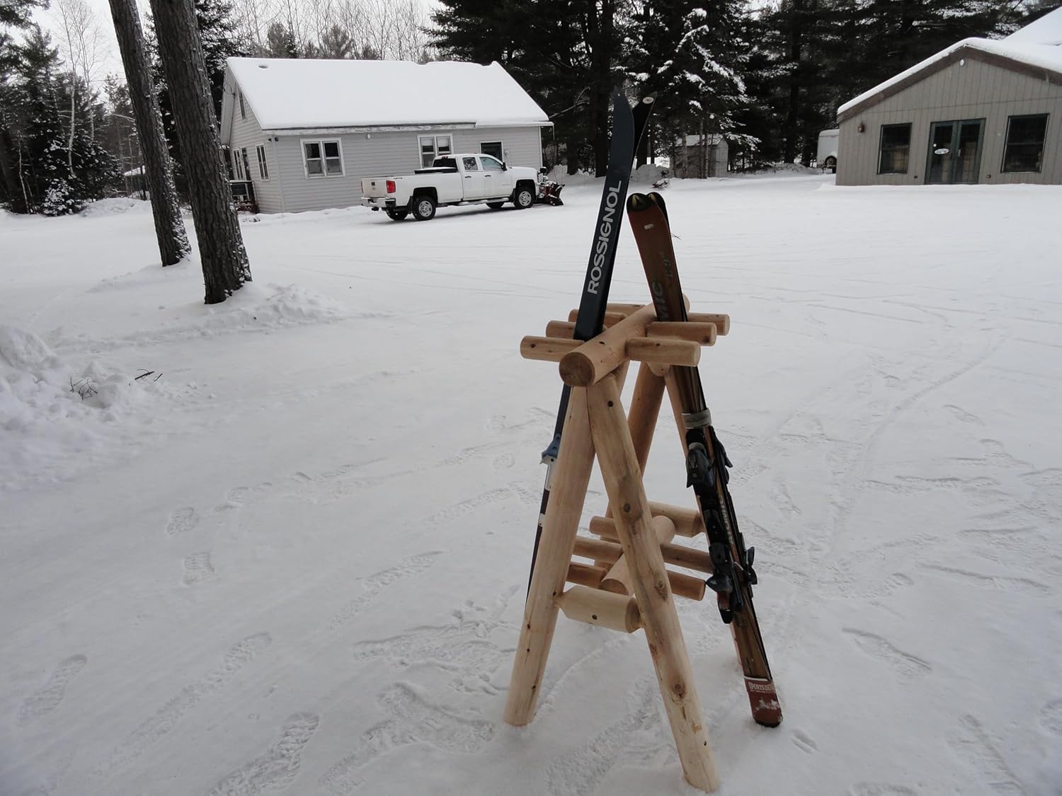 - HANDMADE IN NORTHERN WISCONSIN BY LOG ARTISANS: Handcrafted by expert log artisans in Northern Wisconsin with 23+ years of experience, this ski storage rack offers premium quality and craftsmanship. Suitable for use indoors or outdoors, it functions well as a ski holder, snowboard rack garage solution, or floor ski rack in cabins, garages, ski resorts, and rental locations.