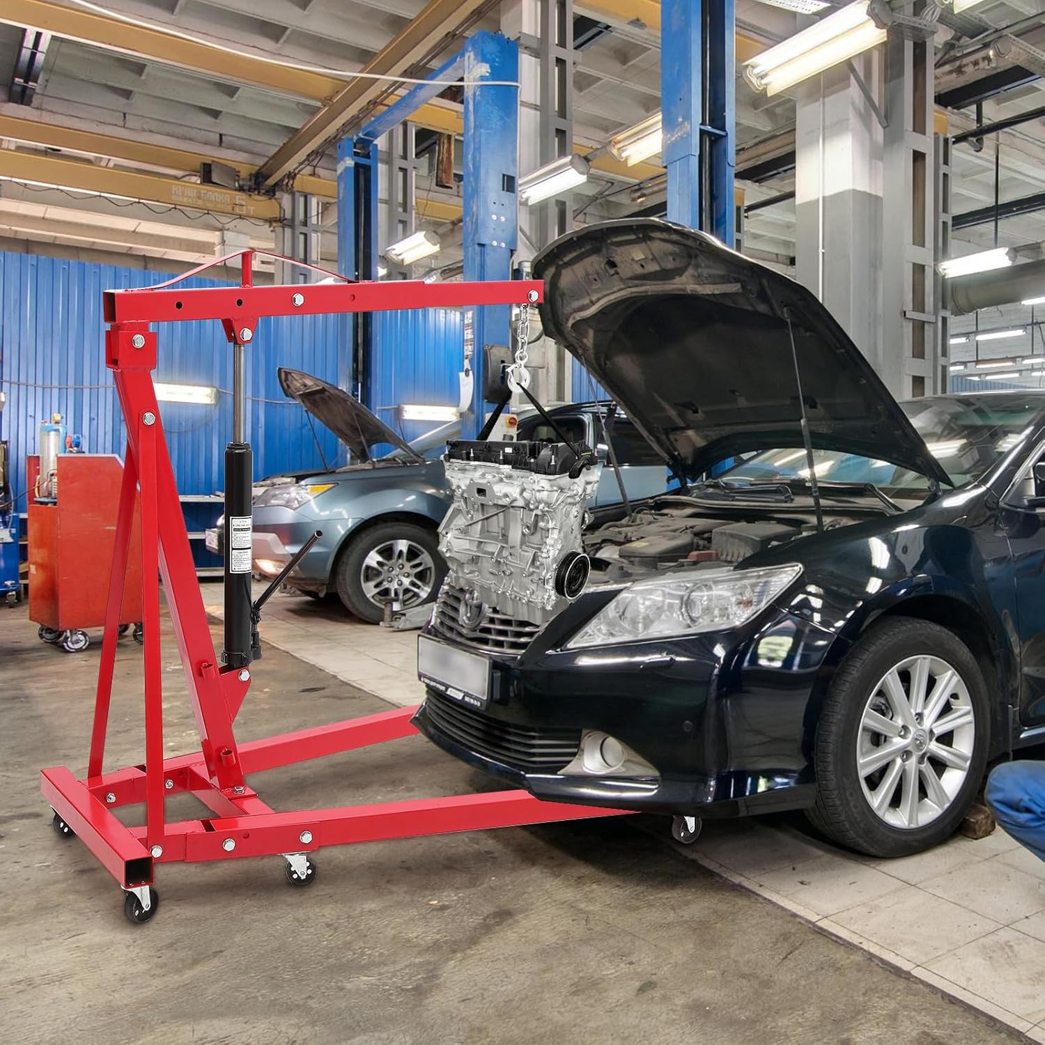 Engine Hoist 2 Ton,Cherry Picker Engine Hoist,Folding Hydraulic Tilting Engine Lift with 360 Degree Swivel Wheels for Ports, Warehouses, Garage, Factory