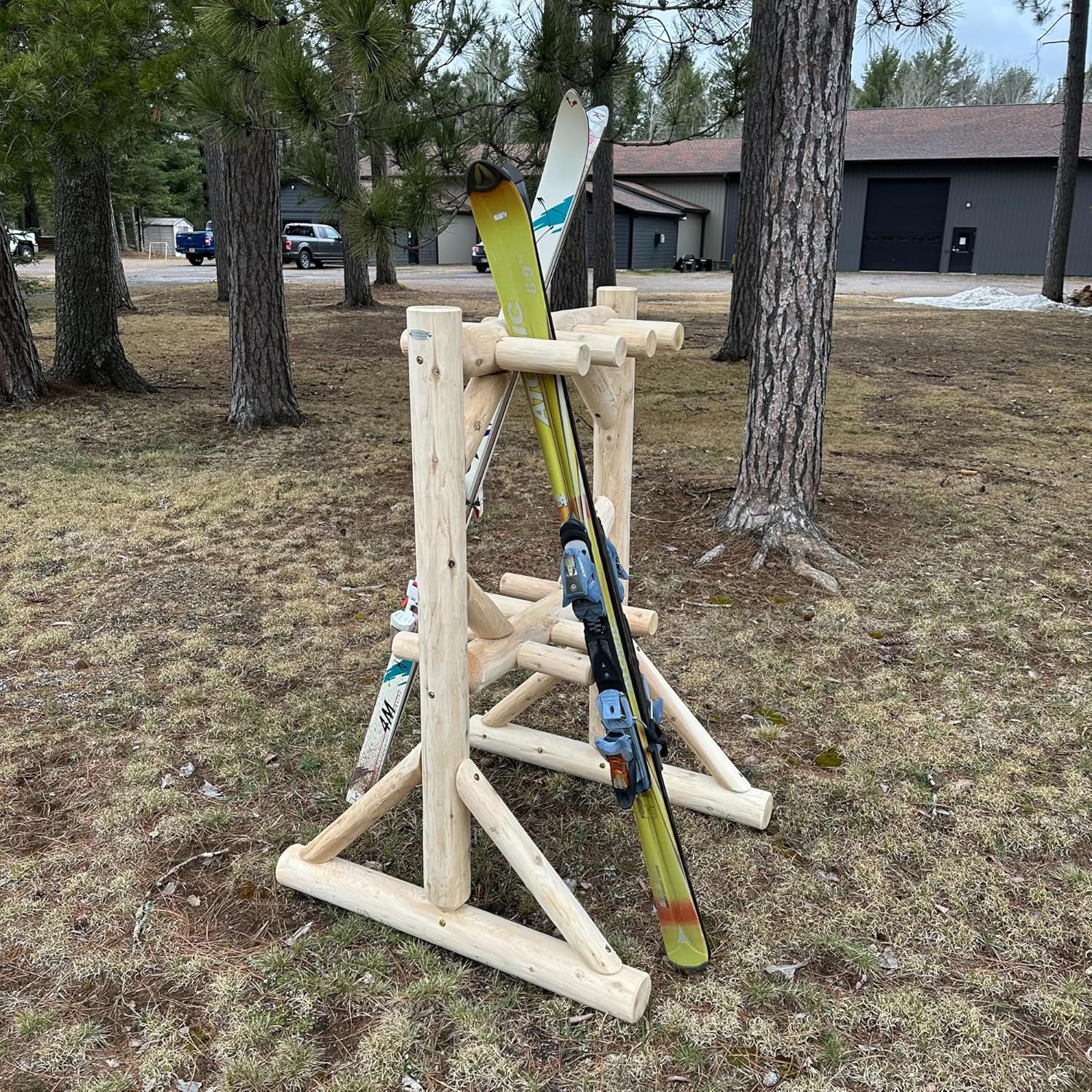 - HANDMADE IN NORTHERN WISCONSIN BY LOG ARTISANS: Each rack is handcrafted in Wisconsin by skilled log artisans with decades of experience. Designed for reliable ski storage rack for garage or outdoor use, it reflects attention to detail and durable construction. Proudly made in the USA, itโs a fitting choice for anyone needing a dependable ski holder, snowboard stand, or custom-built ski and snowboard storage system for their home or lodge.