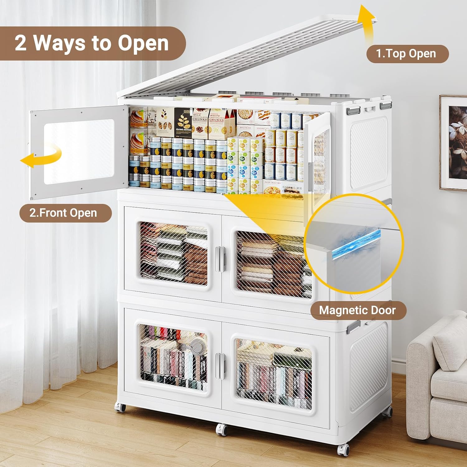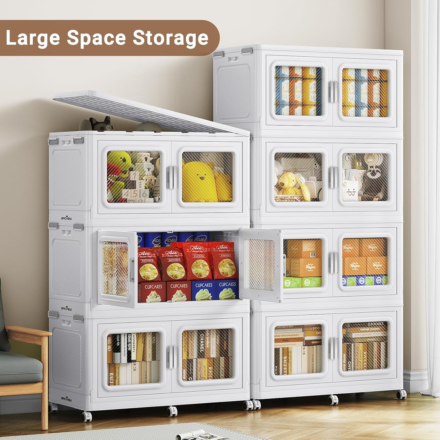 • 【Dual Opening Doors & Easy Access】Broview extra large storage bins feature front double magnetic doors with easy-pull handles for daily quick access and a top lid for direct retrieval of large items like blankets. The huge storage box capacity equivalent to multiple small drawers, they enable organized, multi-level storage—perfect for closets, bedrooms, or nurseries.