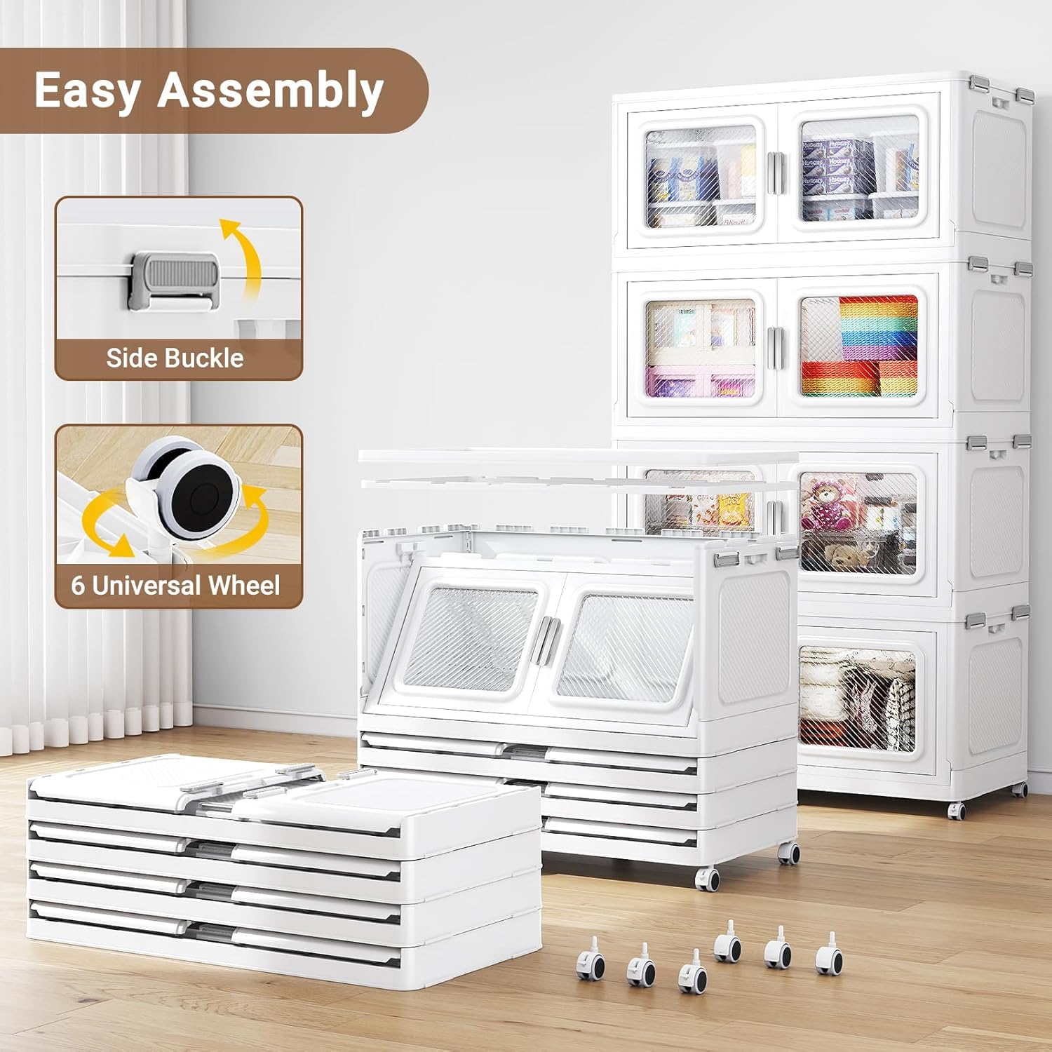 • 【Stackable Design & 360° Rotating Wheels】Our stackable storage bins with wheels design enables secure multi-layer stacking, reinforced by double side 2-buckles and 1 rear buckle for stability. Heavy-duty storage cabinet equipped with 6 TPR-coated 360° swivel wheels for effortless mobility, keeping spaces tidy and organized