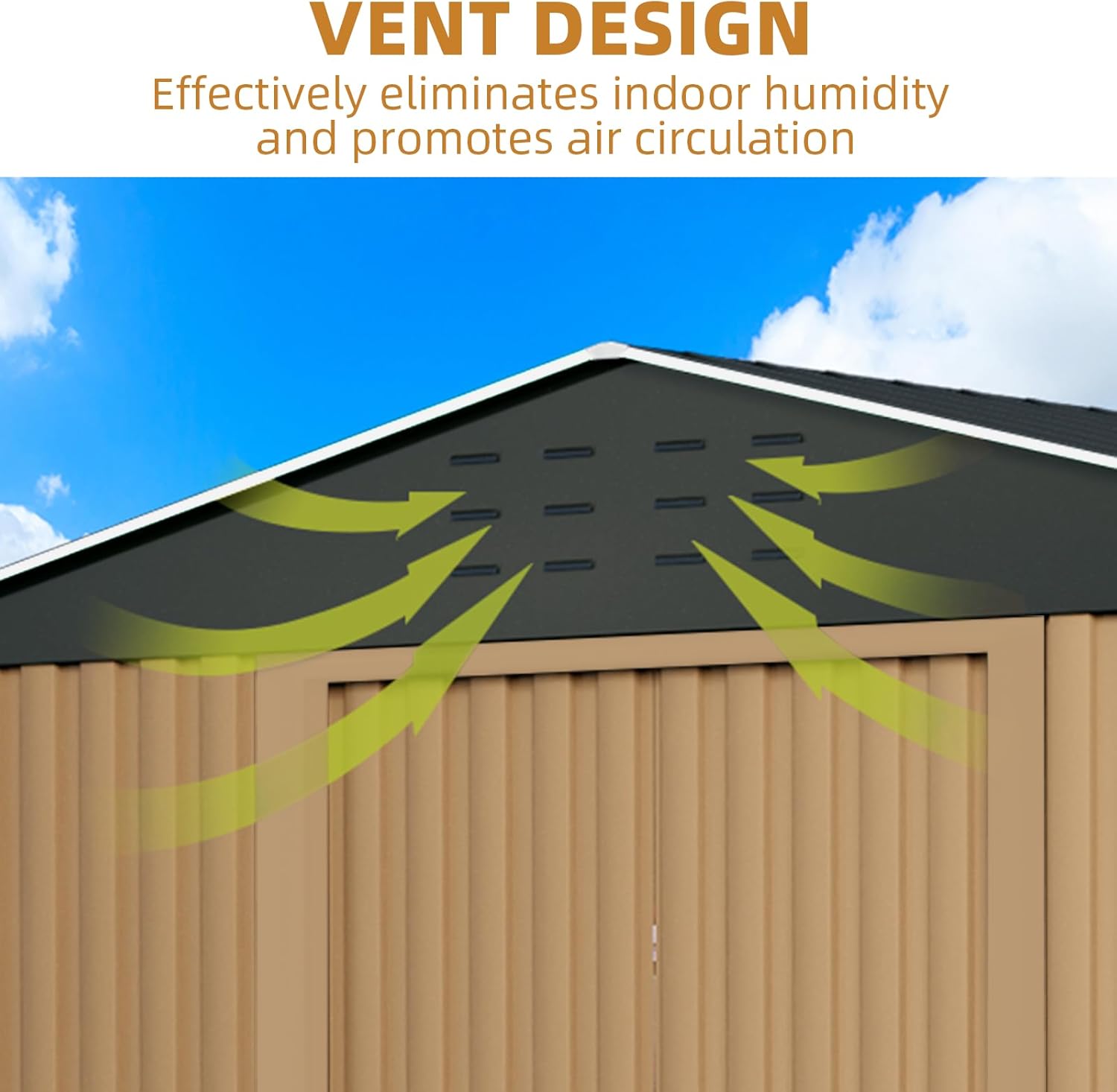 - 【Spacious Storage Space】This 8 X 12-Foot Metal Shed Provides Ample Storage Space And Can Easily Accommodate Snow Blowers, Shovels, Outdoor Furniture, Bicycles, Gardening Tools And Other Items, Making It An Ideal Choice For Your Yard Tidying Up.