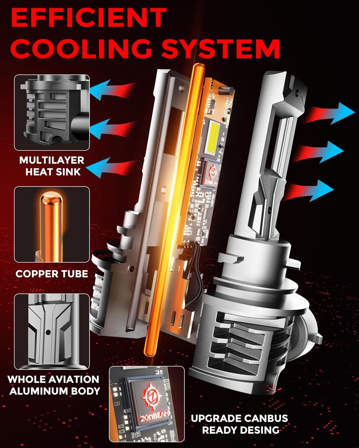 - [Super-Bright 40000LM] 2025 ZONBEAM 9005 led bulbs with 40000lm ultra-high lumen output per group compared to halogen and 6000k cool white light, illuminates all the details on the roadway at night, making night driving more comfortable and safer.