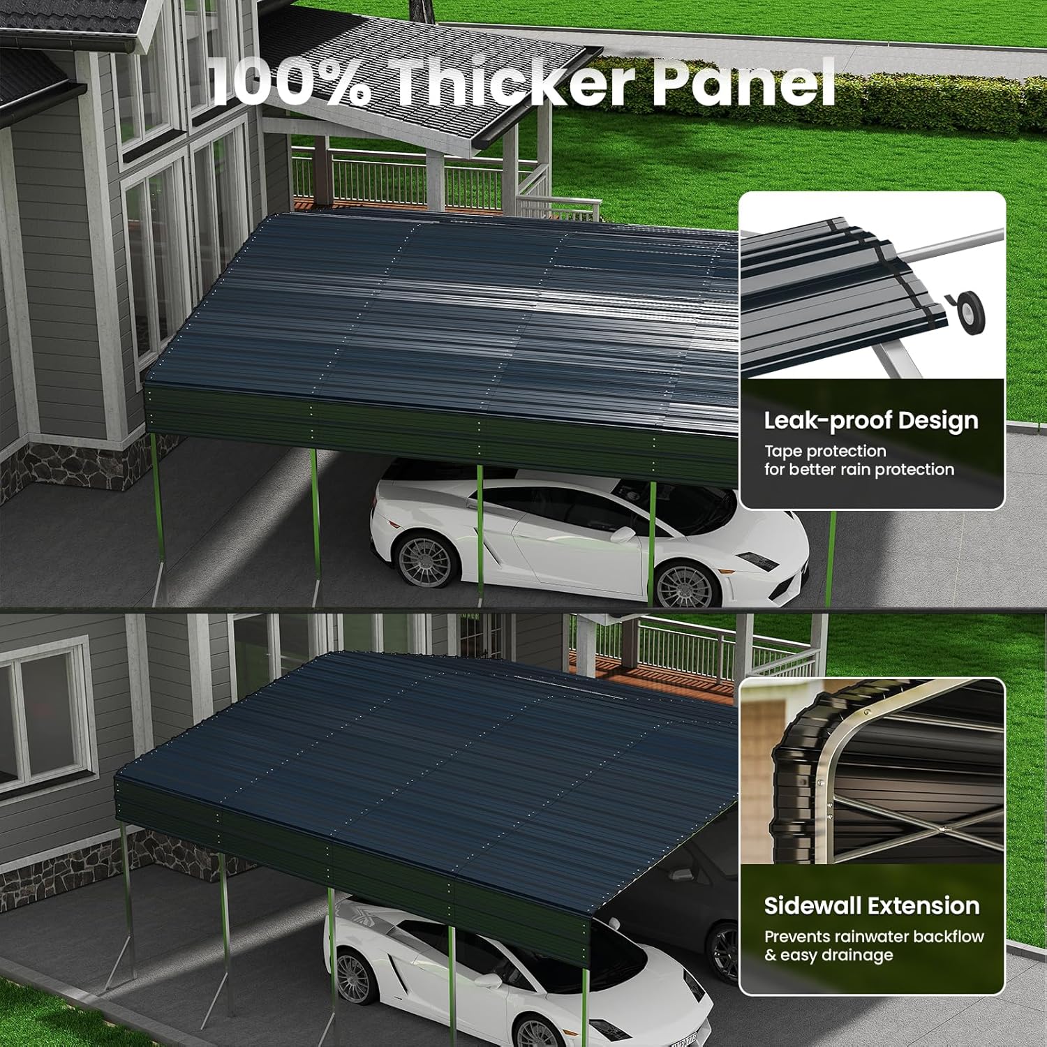 20x20' Heavy Duty Metal Carport – Sturdy Structure, All-Weather Protection, Easy Assembly for Cars, Trucks, Boats, Tractors, and Outdoor Storage (Grey, 20x20FT)