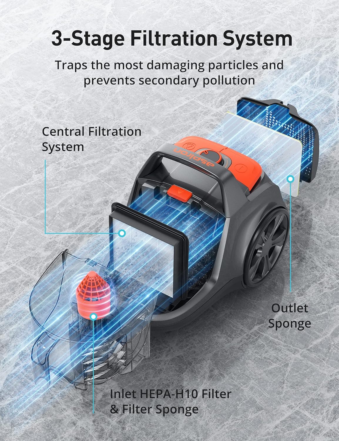 - Powerful Multipurpose Cleaning: The efficient brushless motor of the Aspiron canister vacuum cleaner generates over 30Kpa of strong suction for vacuuming dust, dirt, pet hair, and more