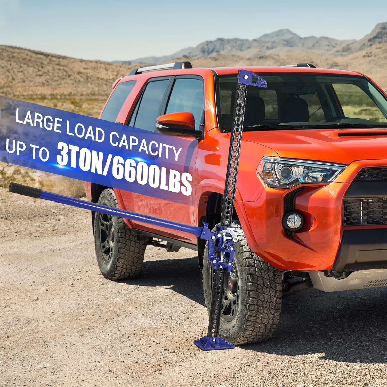 - ULTRA-STABLE & SAFE OFF ROAD JACK :Designed with a wide base for superior stability, this hi lift jack ensures secure operation on uneven terrain. The ratcheting mechanism allows precise height adjustments, making it ideal for offroad jack recovery and heavy-duty farm tasks.