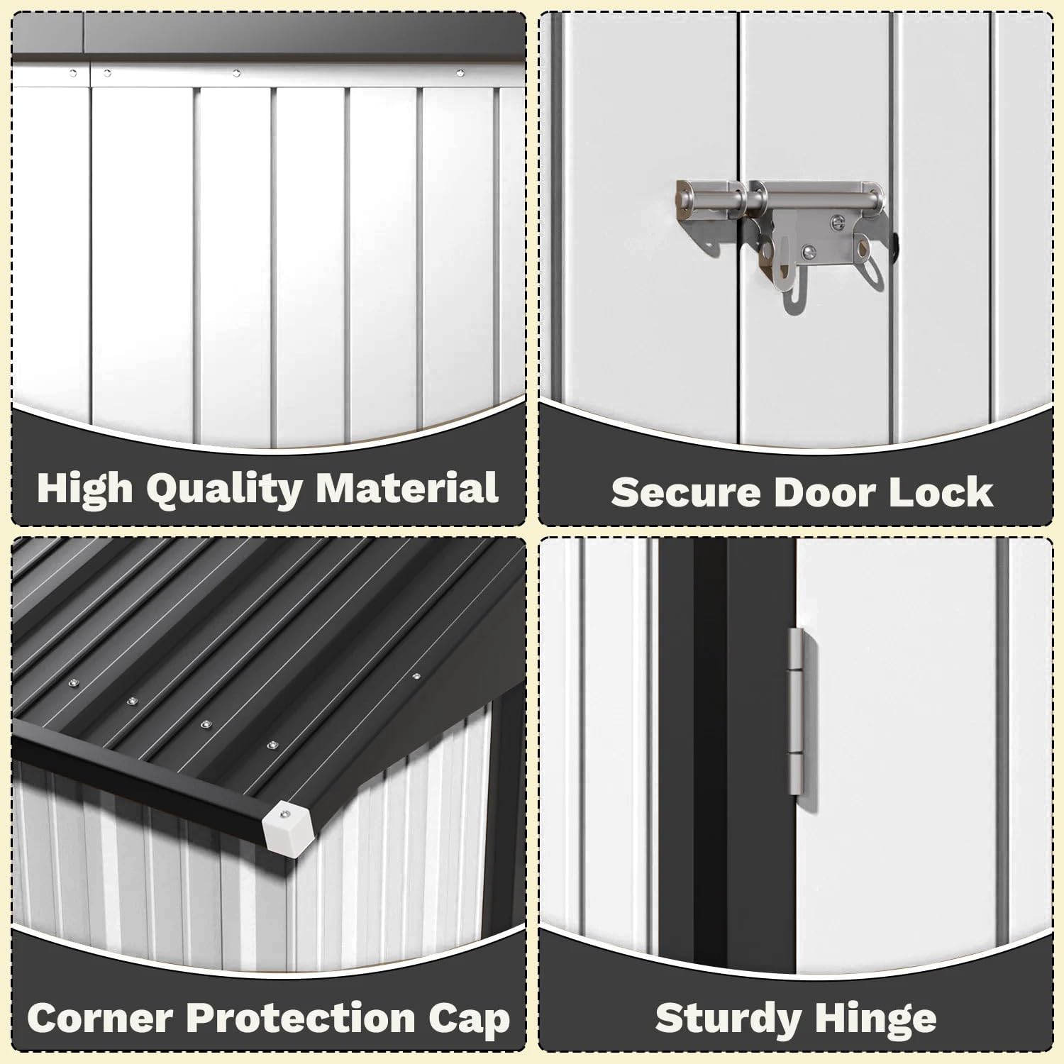 - Robust Steel Construction for Long-Lasting Durability: Built with heavy-duty galvanized steel, this shed resists rust, harsh weather, and wear, offering reliable protection for your tools and equipment year after year.