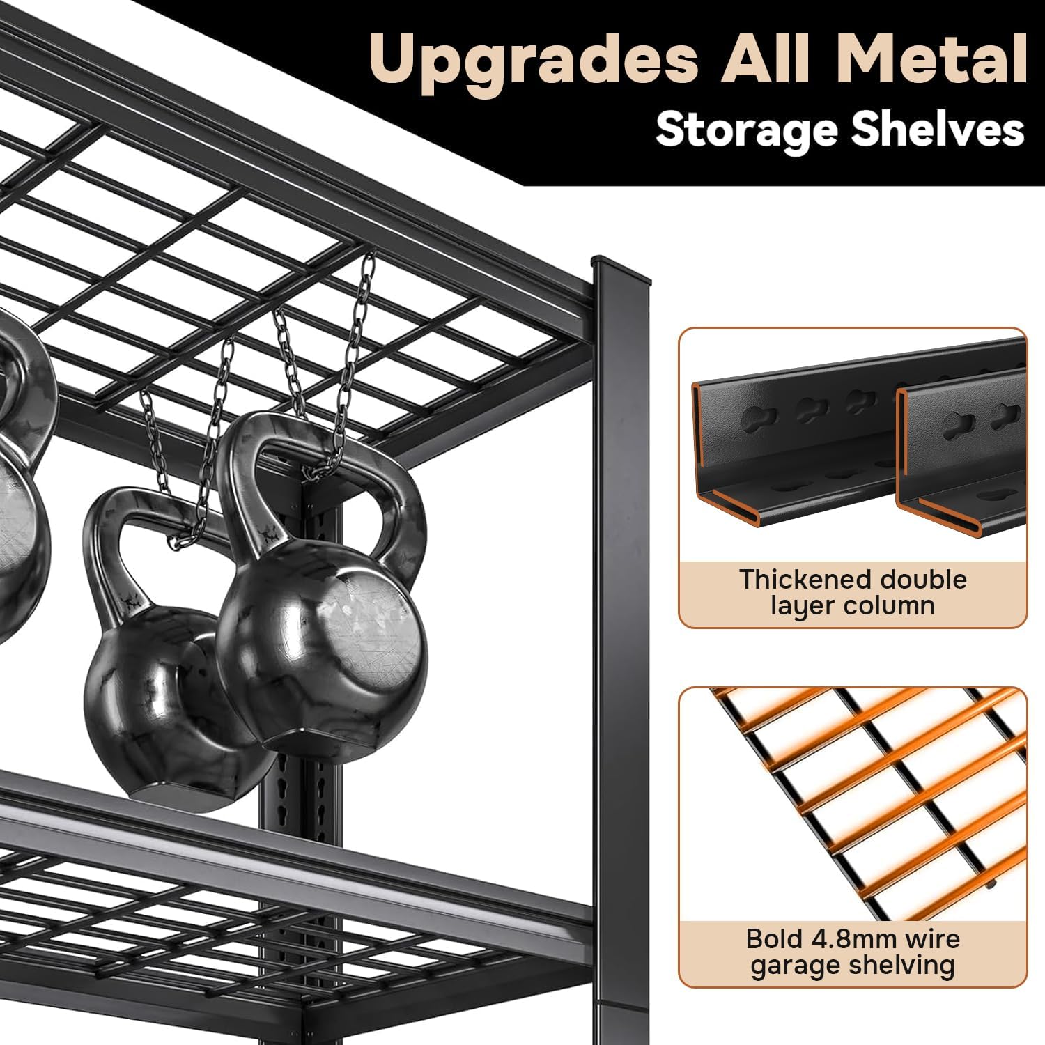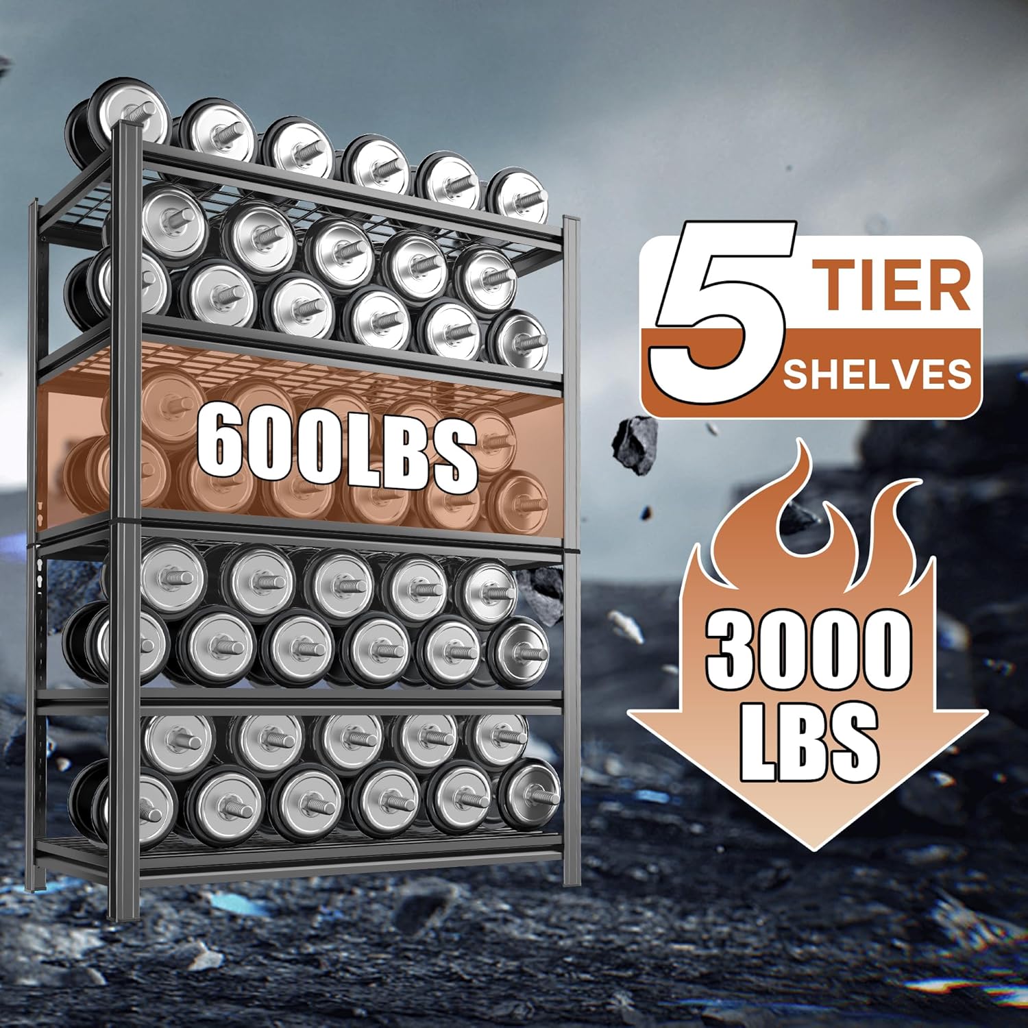 - πͺ COMMERCIAL-GRADE STRENGTH, 3000 LBS BEAST MODE β Don't settle for flimsy shelves. Our garage shelving is forged from high-quality, thickened cold-rolled steel and features an exclusive double-layered column design for unmatched stability. It effortlessly supports a massive 3000 LBS total capacity (600 LBS per shelf). From heavy power tools and packed totes to engine parts, store your heaviest items with absolute peace of mind. Conquer your clutter with confidence!