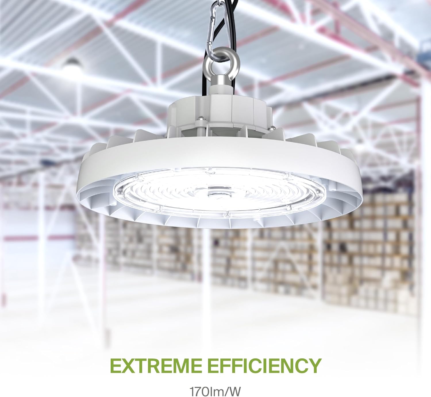 ASD LED High Bay UFO Light Fixture, Commercial Shop Lighting | 3CCT, Dimmable, IP69K Waterproof, DLC Premium, UL Listed | 150W 23600LM 3000-5000K 100-277V | Warehouse, Garage, Workshop Lamp | White