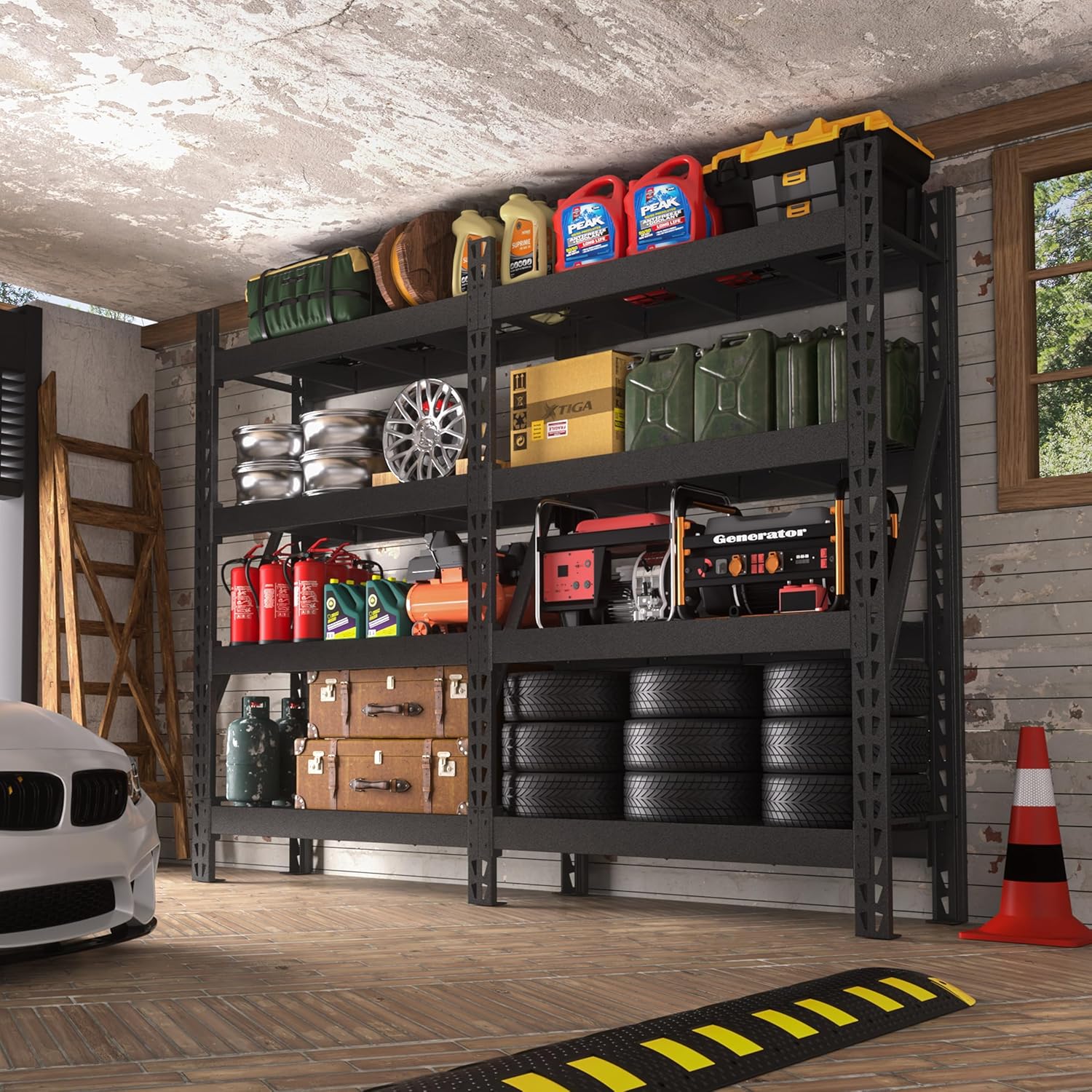 - Heavy-Duty Construction - This heavy-duty metal shelving unit is built with thickened metal shelves and reinforced columns for maximum stability. The strong wire shelves provide solid support without bending, while the diagonal bracing adds extra strength. Each shelf holds up to 2,250 lbs, with a total capacity of 9,000 lbs, allowing you to store heavy tools, equipment, and bulk items securely.