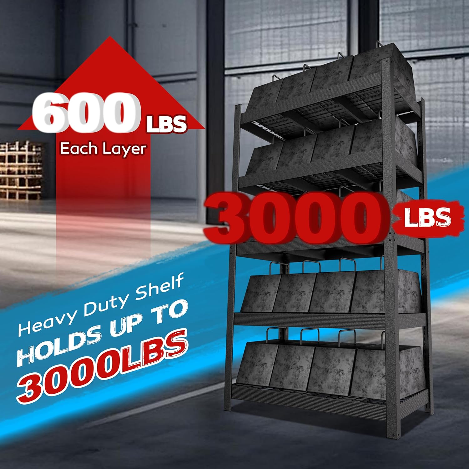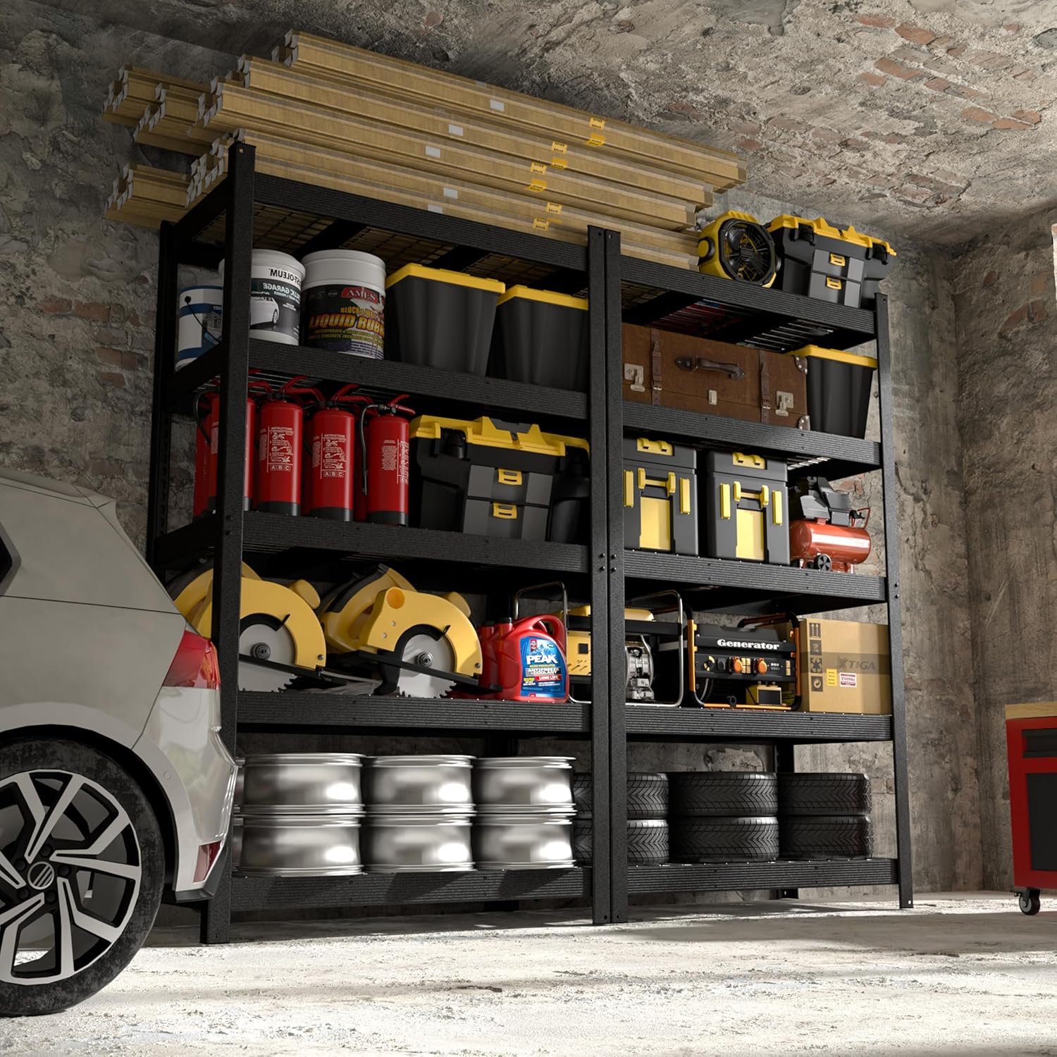 - STURDY AND HEAVY DUTY - 1 pack Garage shelving assembled dimension: 48.03”W × 24.41”D × 83.78”H, Max Load Per Shelf:600lbs, 5 tier shelves' total max load weight is 3000 lbs. Sturdy metal frame enhanced load-bearing capacity. No wobbling or shaking when fully loaded as this metal shelving has extra support beams which can enhance the stability and durability of the storage shelves.