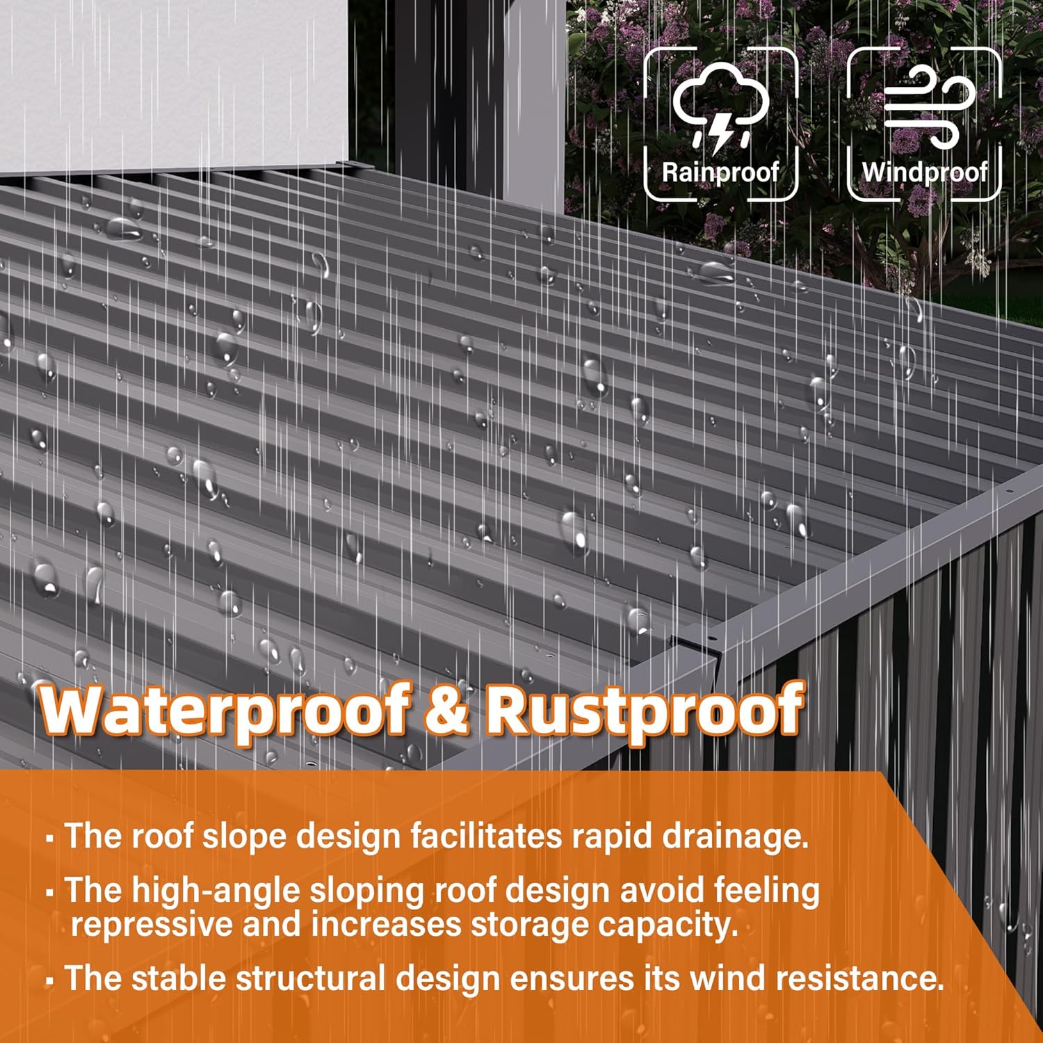 - Strong and Reliable Construction: Built from premium galvanized steel, this metal garden shed is engineered for durability, ensuring it resists bending and maintains stability against daily outdoor conditions.